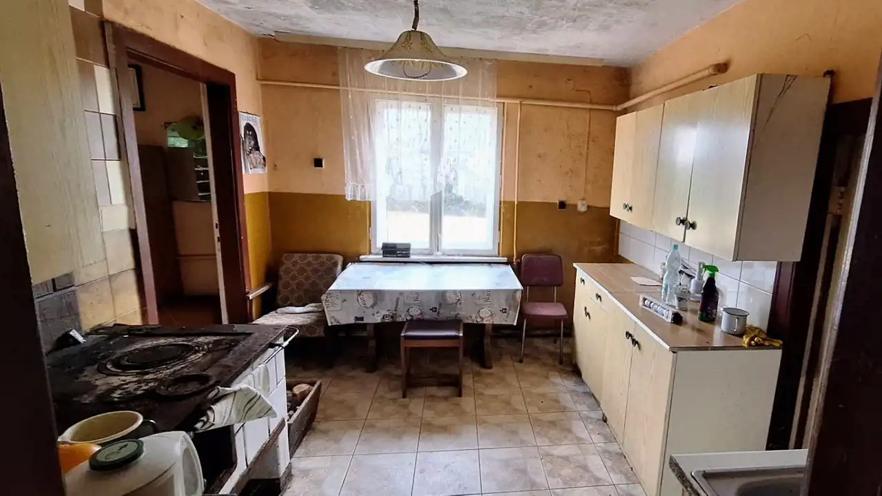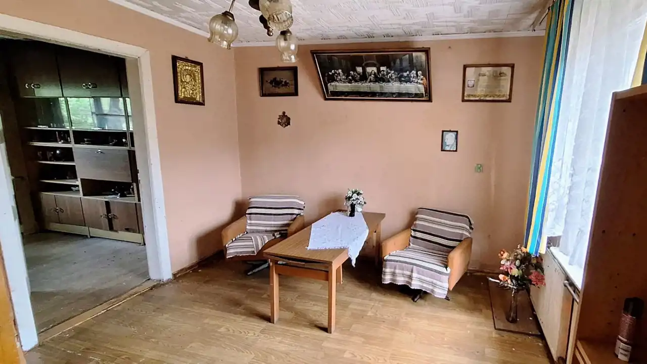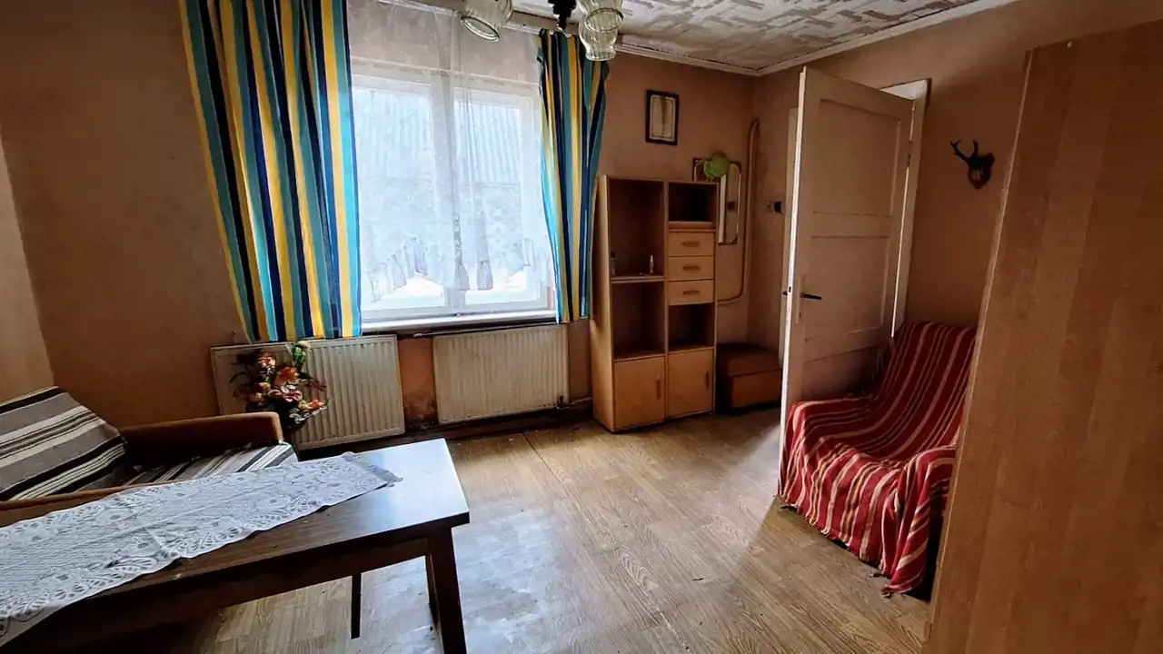 Na Sprzedaż ( rzadko już spotykane ) stare, przedwojenne siedlisko , poza wsią. Budynki z około 1930 roku. Dom plus budynki gospodarcze. Na działce około 1761m2. Dom o powierzchni około 86m2, z piwniczką. Na podłodze stare oryginalne deski. Okna stare drewniane. Dach kryty eternitem. W pokojach piec kaflowy plus stary piec w kuchni. Strych do zagospodarowania. Dojazd do nieruchomości polną drogą. Na działce kilka starych odmian drzew owocowych.
