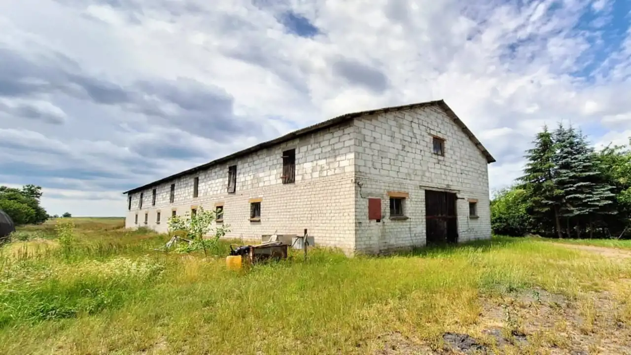 Budynki Gospodarcze : Stara Stodoła , Garaż murowany z kanałem, obora murowana około 300m2, wiata na zboże około 200m2 . Całe gospodarstwo to około 28 Hektarów na 3 Księgach Wieczystych, położone na kilku działkach w różnych częściach wsi.
