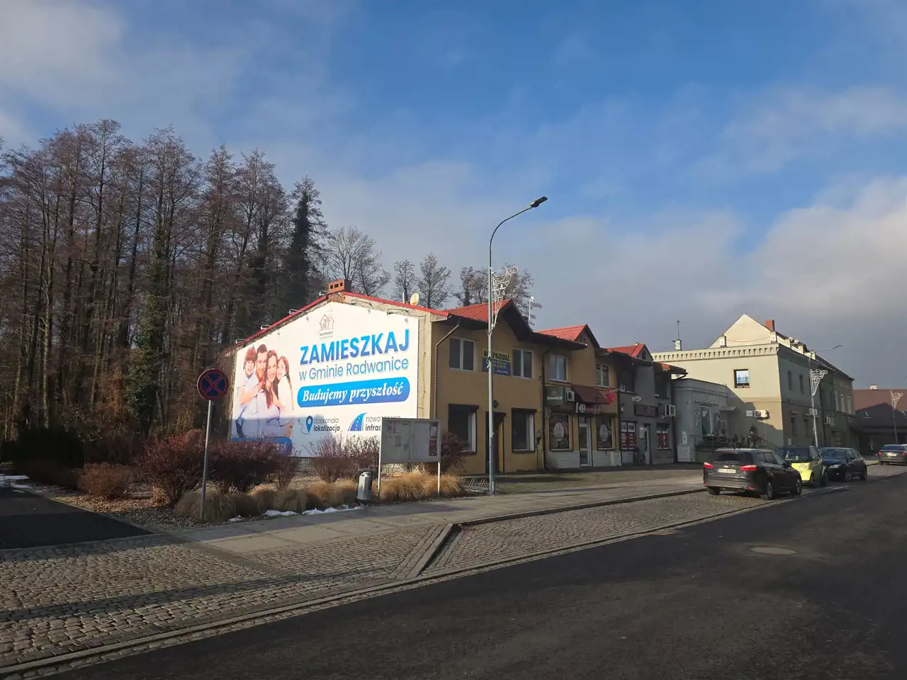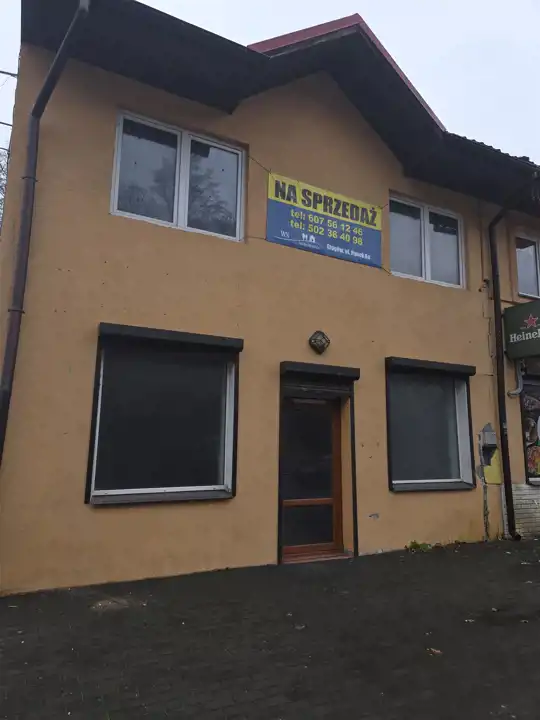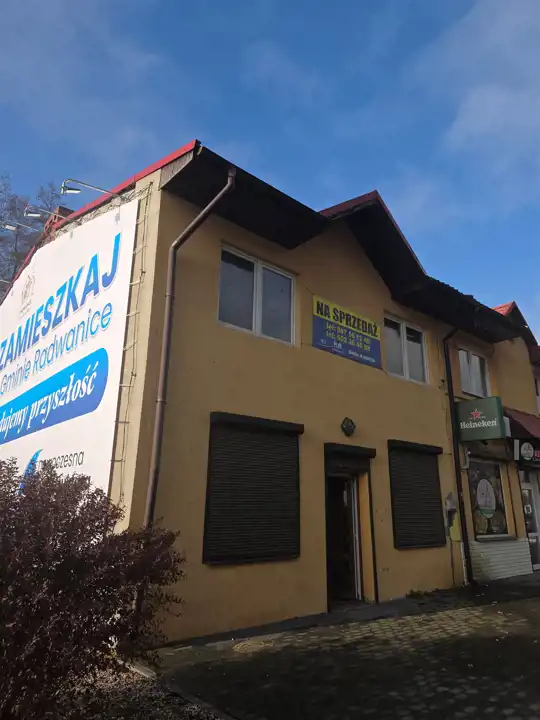 Budynek usługowo-mieszkalny położony przy głównej ulicy w kompleksie handlowym miejscowości.