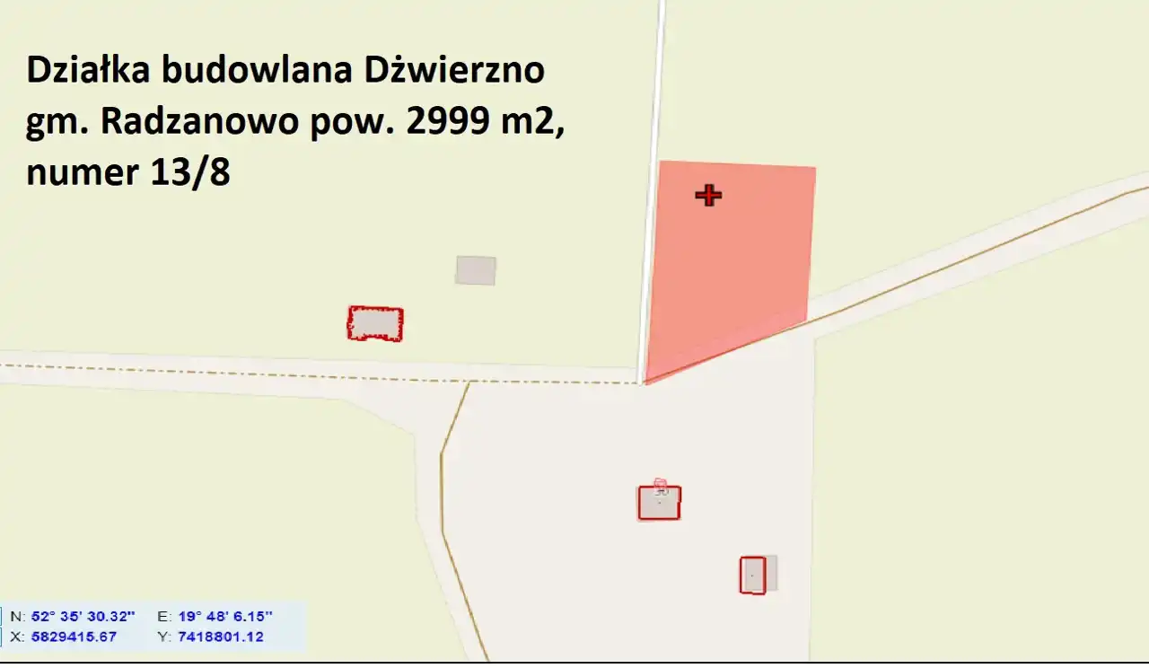 Sprzedam działkę budowlaną położoną w m. Dźwierzno w gminie Radzanowo pow. płocki