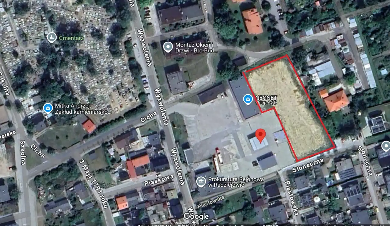 Oferta sprzedaży działki inwestycyjnej w Radziejowie w pobliżu działającej stacji paliw oraz kompleksu budynków handlowych.
