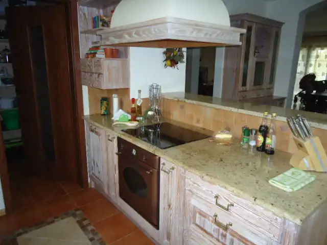 PARTER: widna, przestronna kuchnia ze śpiżarnią i jadalnią otwartą na salon. W stałej zabudowie kuchennej umieszczone są lodówka, zmywarka, kuchnia indukcyjna z piekarnikiem, okap.