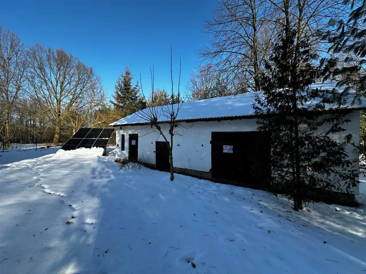 Siedlisko jest zabudowane budynkiem mieszkalnym o powierzchni 72 m2, / trzy pokoje, kuchnia, łazienka/, stodoła murowana o powierzchni ok. 100 m2, budynek gospodarczy murowany o powierzchni 80 m2 oraz garaż 20 m2.