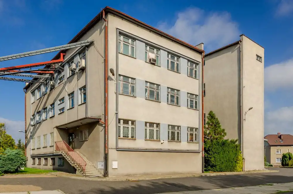 Na ogrodzonym terenie znajduje się budynek biurowy o powierzchni użytkowej 3341,60 m2 oraz budynek garażowy (304,20 m2). Obiekt biurowy 4-kondygnacyjny wraz z piwnicą. Wewnątrz mieszczą się różnorodne powierzchnie biurowe (m.in. w układzie gabinetowym), pomieszczenia socjalne, gospodarcze i techniczne. Na działce utwardzony teren z licznymi miejscami postojowymi. Nieruchomość z korzystną ekspozycją i bramą wjazdową od ul. Szymały. Obiekt wyposażony jest w instalacje: elektryczną, wodno-kanalizacyjną oraz posiada węzeł cieplny do ogrzewania budynku.
