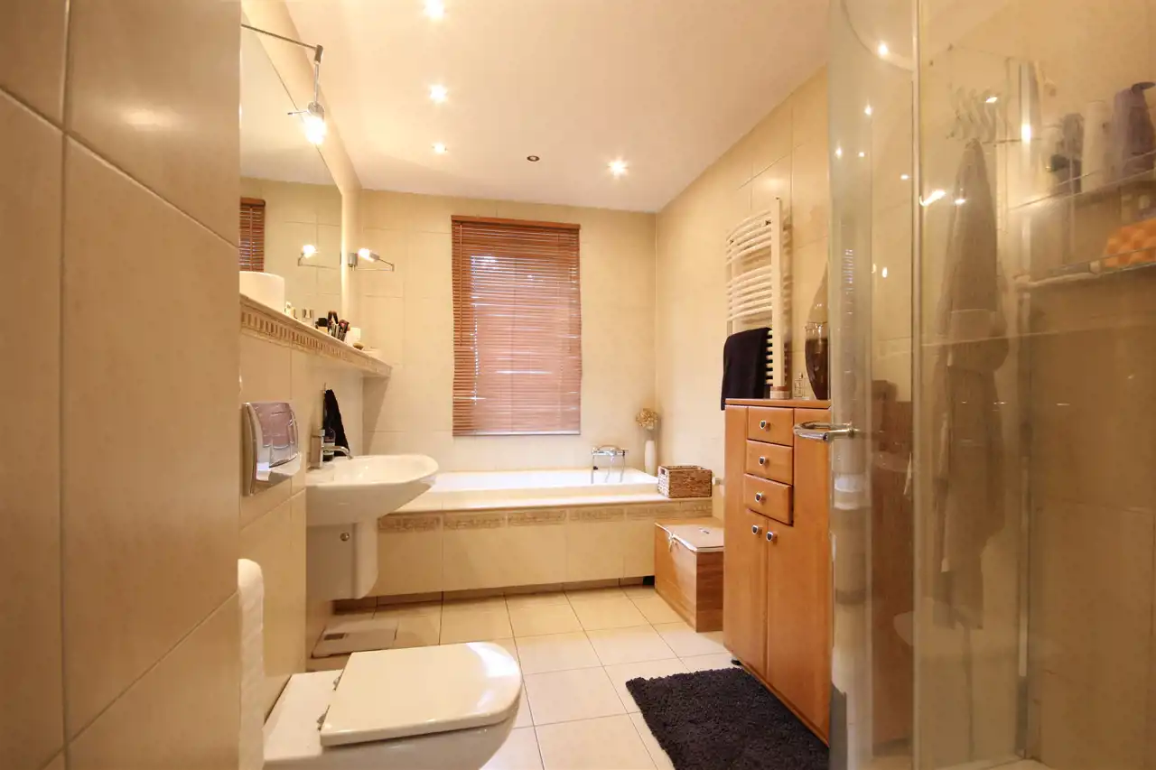 Dom został wykończony z najwyższą dbałością o detale, łącząc nowoczesny design z funkcjonalnością. Przemyślany układ pomieszczeń zapewnia wygodę zarówno dla rodzin, jak i osób poszukujących przestrzeni do pracy czy relaksu.