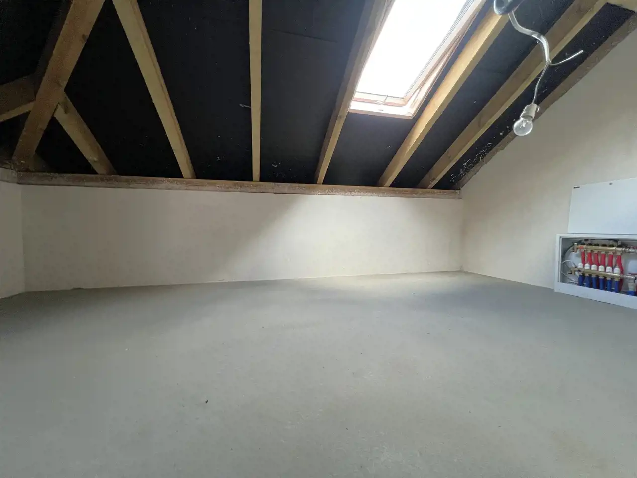 Poddasze nieużytkowe/strych - po podłodze ok. 40 m2, powierzchnia użytkowa 18,56 m2, w tym dwa pomieszczenia wg norm o metrażu: 12,06 m2 i 6,50 m2, ale do wykorzystania większa powierzchnia.