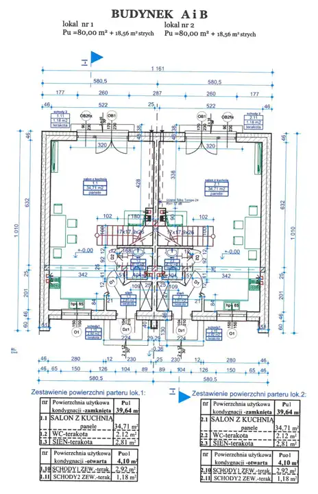 - bliźniaki bez garażu - lokale A1A2 i B1B2 (98,56 m2) - ostatni wolny lokal B2 cena 790.000 zł