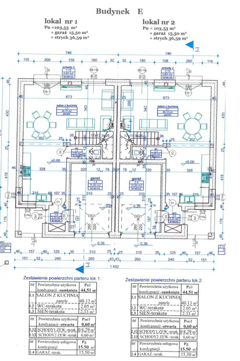 - segmenty środowe z garażem F2 i G1 (155,73 m2) cena 850.000 zł