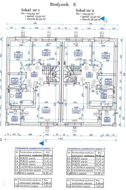 - bliźniaki bez garażu - lokale A1A2 i B1B2 (98,56 m2) - cena: od 760.000 do 790.000 zł
