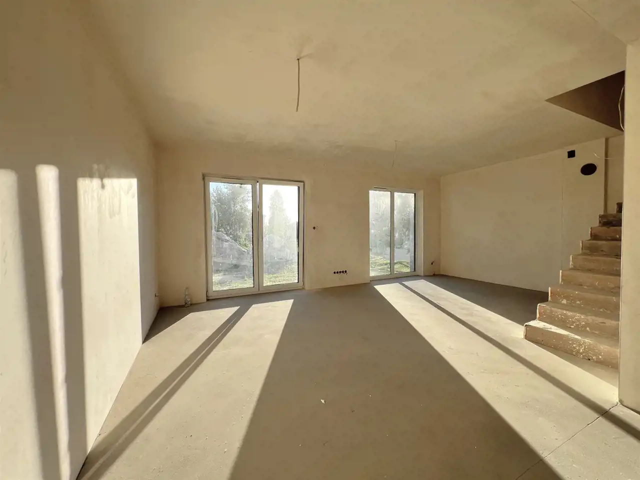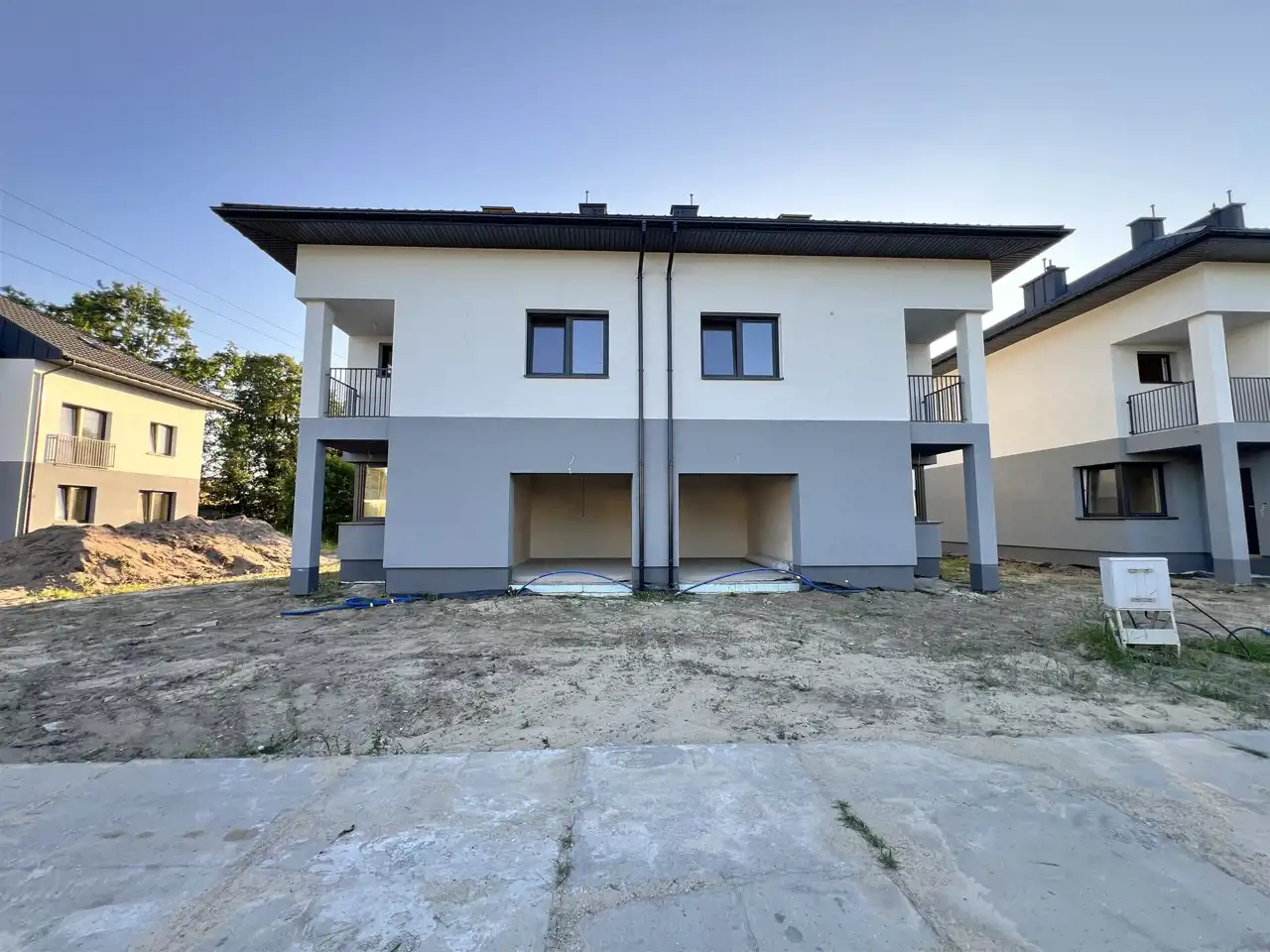 Nadma, połowa bliźniaka z garażem, stan deweloperski, 4 pokoje + duże poddasze, ogródek około 122 m2, miejsce postojowe.