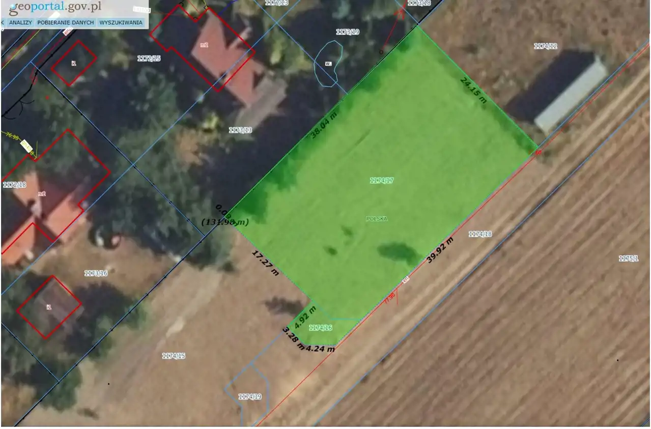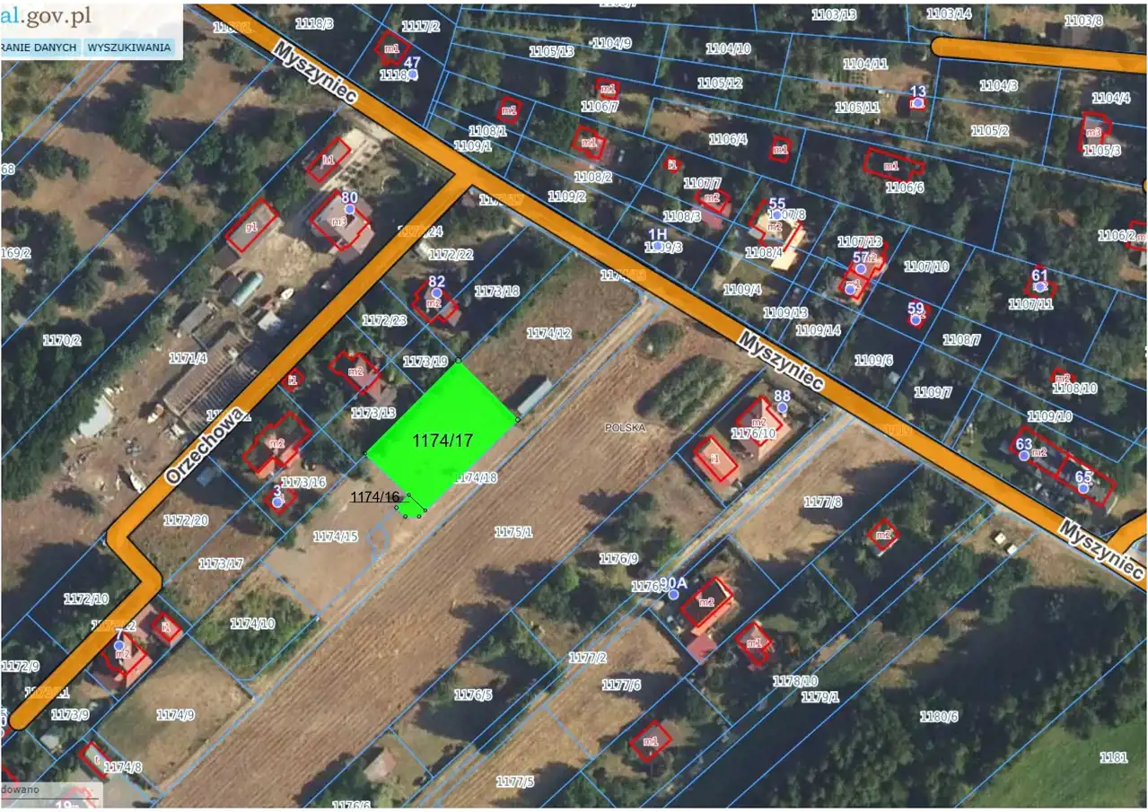 Powierzchnia łączna: 940 m² (działki nr 1174/16 i 1174/17). Do działek przynależy udział w drodze.