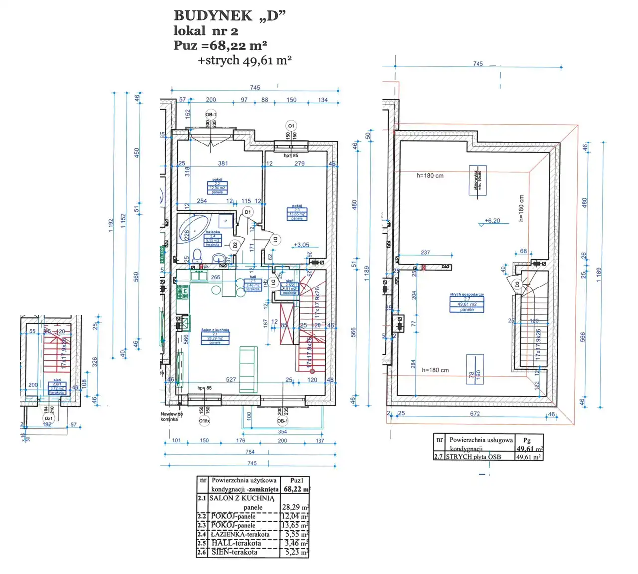 + poddasze nieużytkowe 49,61 m2 - po podłodze ok. 60 m2.