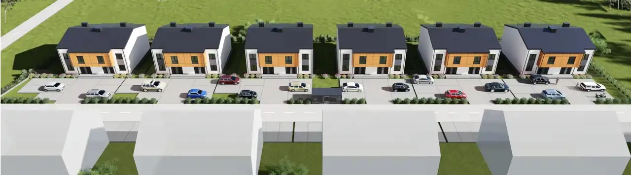 Drugi etap inwestycji składającej się z 12 lokali mieszkalnych, każdy z dwoma miejscami postojowymi i ogródkiem.