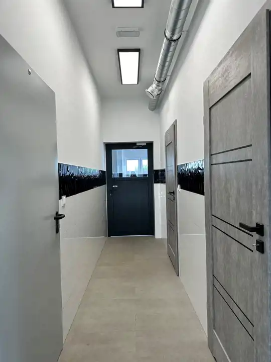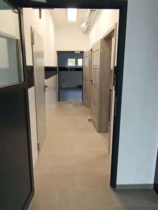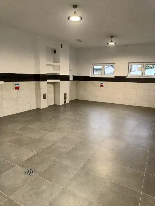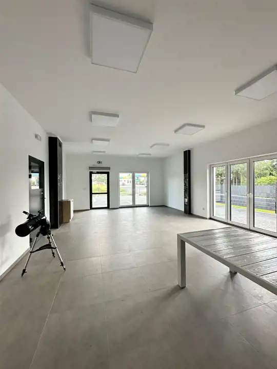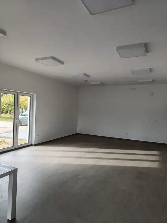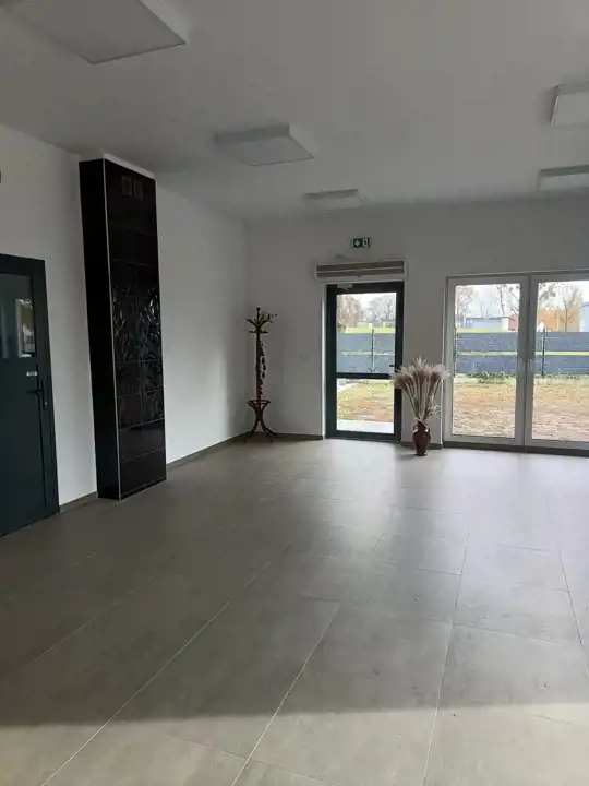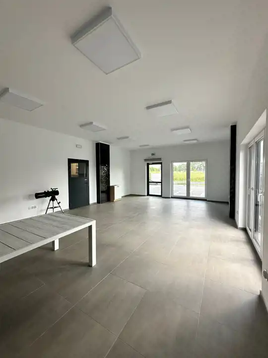 - **Pomieszczenie usługowe**: 55 m², jasne i przestronne, z dużą ilością okien zapewniających naturalne światło.