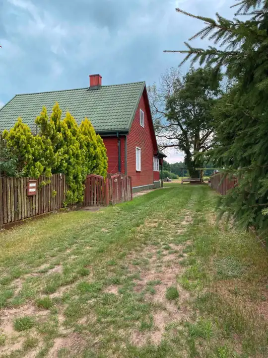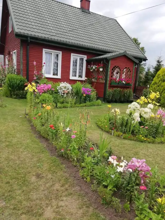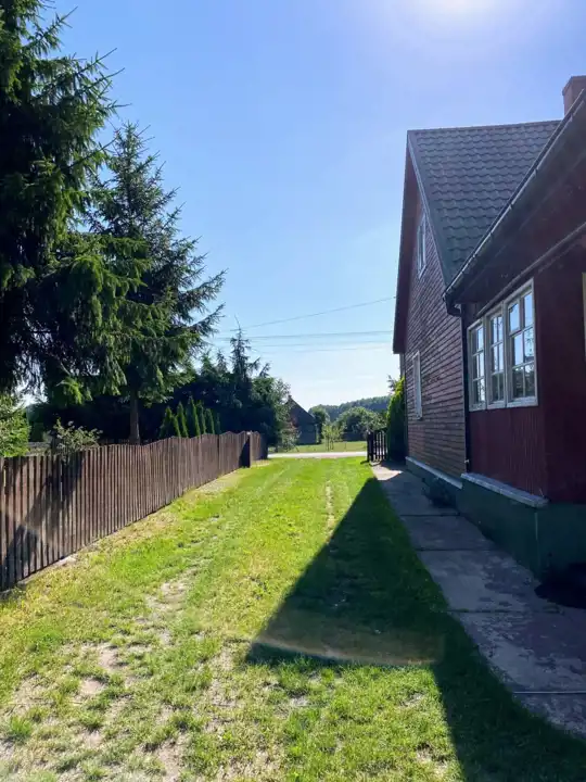 - Działka o powierzchni 4059 m², ogrodzona drewnianym płotem i pięknie zagospodarowana kwiatami, krzewami oraz drzewami.