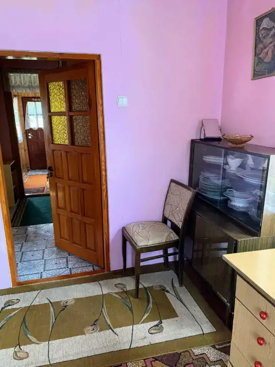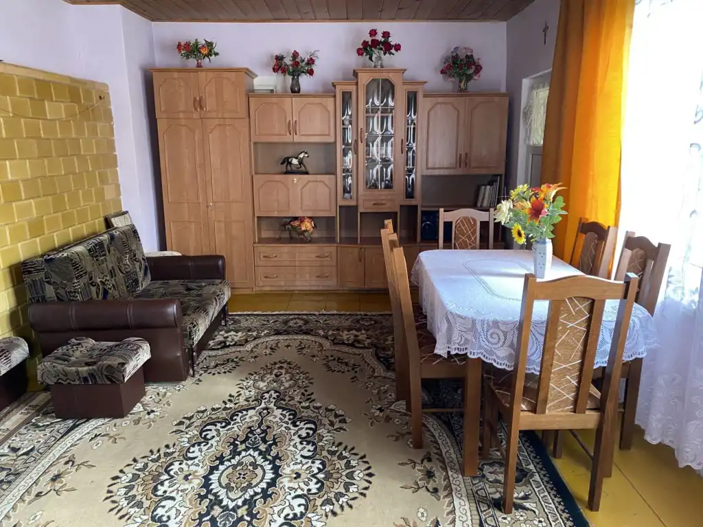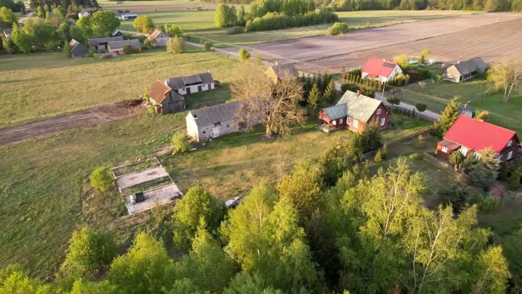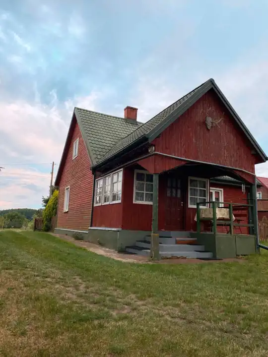 - Dom mieszkalny w stylu "chaty podlaskiej" o powierzchni zabudowy 84 m², wykonany z drewna, w bardzo dobrym stanie technicznym, z nowymi oknami PCV oraz dachem krytym blachodachówką.