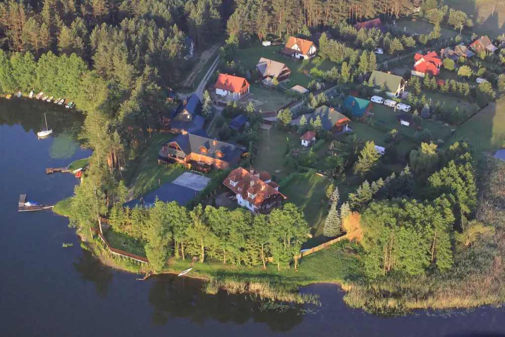 Tel.799-209-700. Panorama.Przepiękna posiadłość nad jeziorem Rajgrodzkim. Na działce (4000m2) o kształcie zbliżonym do prostokąta ( wym. ok. 50x80) znajdują się: dom całoroczny o powierzchni mieszkalnej 300m2 plus 150m2 pełnego podpiwniczenia, garaż-hangar z bezpośrednim podjazdem z jeziora na łodzie ( dodatkowo wyciagarka) o pow. 150m2, apartament gościnny z widokiem na jezioro o pow. 80m2. Własna linia brzegowa ok. 80 metrów długości z pomostem na łodzie. Osobny taras widokowy. Dom posiada na piętrze dwie sypialnie gościnne z łazienką, sypialnię "master" ok. 40m2 z własna łazienką i tarasem. Ogrzewanie centralne na olej opałowy. Na parterze salon z kominkiem, kuchnia z jadalnią, gabinet, dwie łazienki oraz przeszklony dookoła pokój zabaw. Całość w pełni zagospodarowana w świetnym stanie technicznym, najwyższej jakości materiały. Posiadłość do natychmiastowego użytkowania. Własny , bezpośredni dostęp do jeziora i przepiękna panorama uczyniły to miejsce unikalnym ośrodkiem dla koneserów.