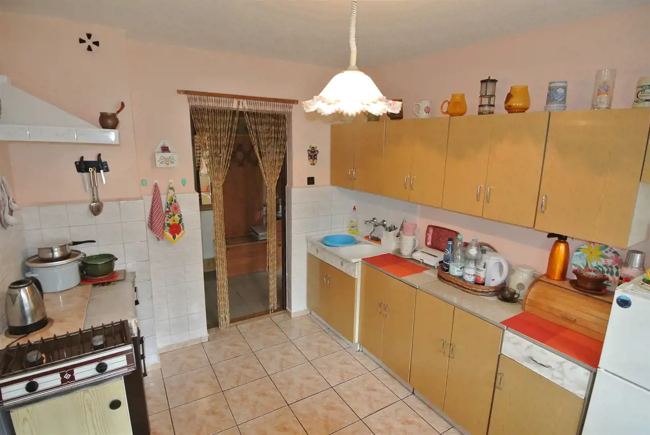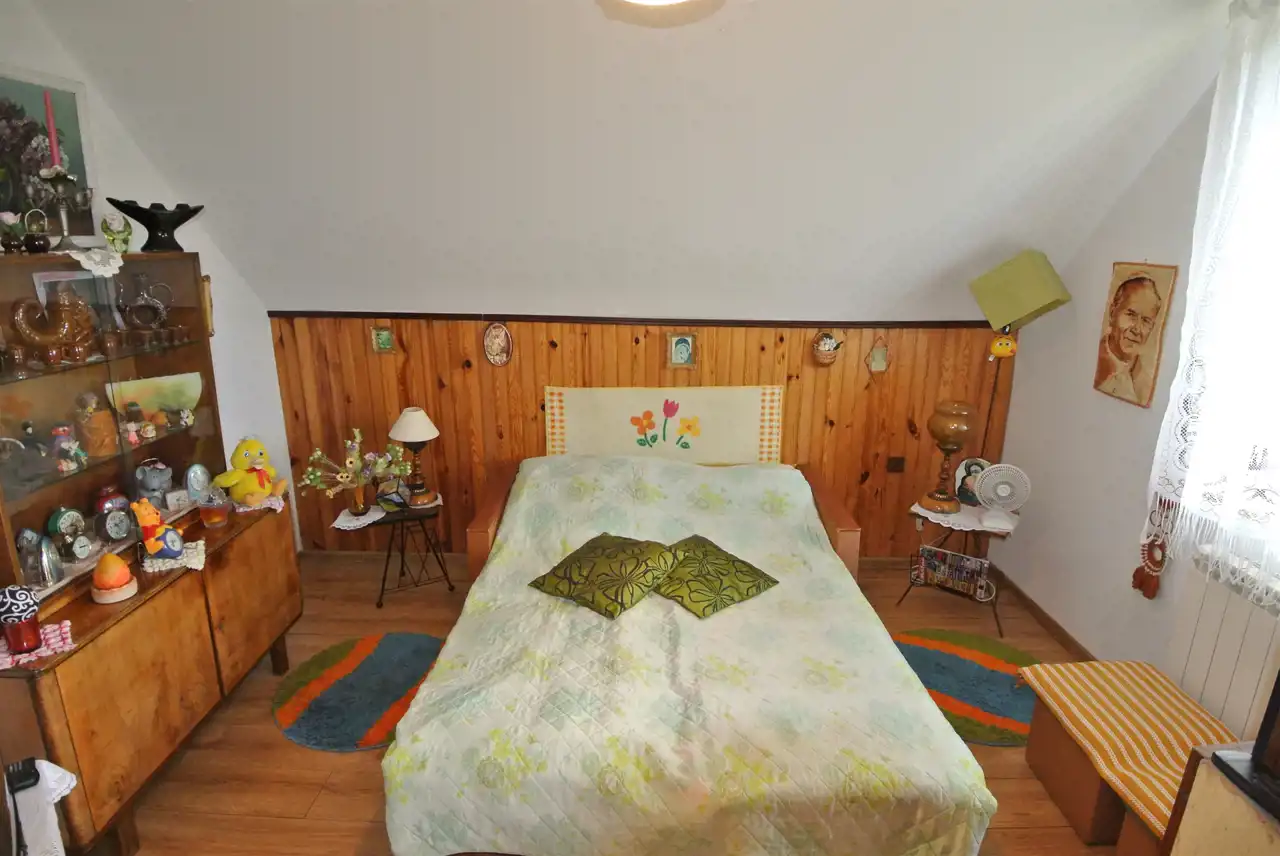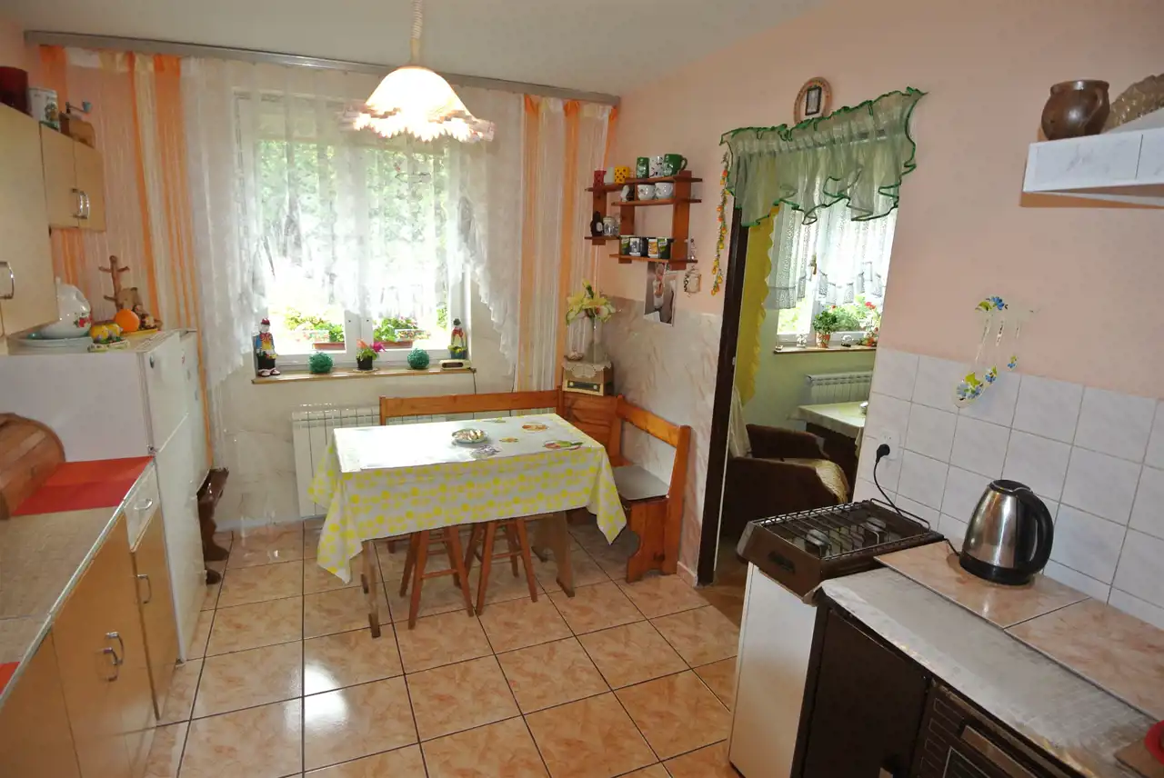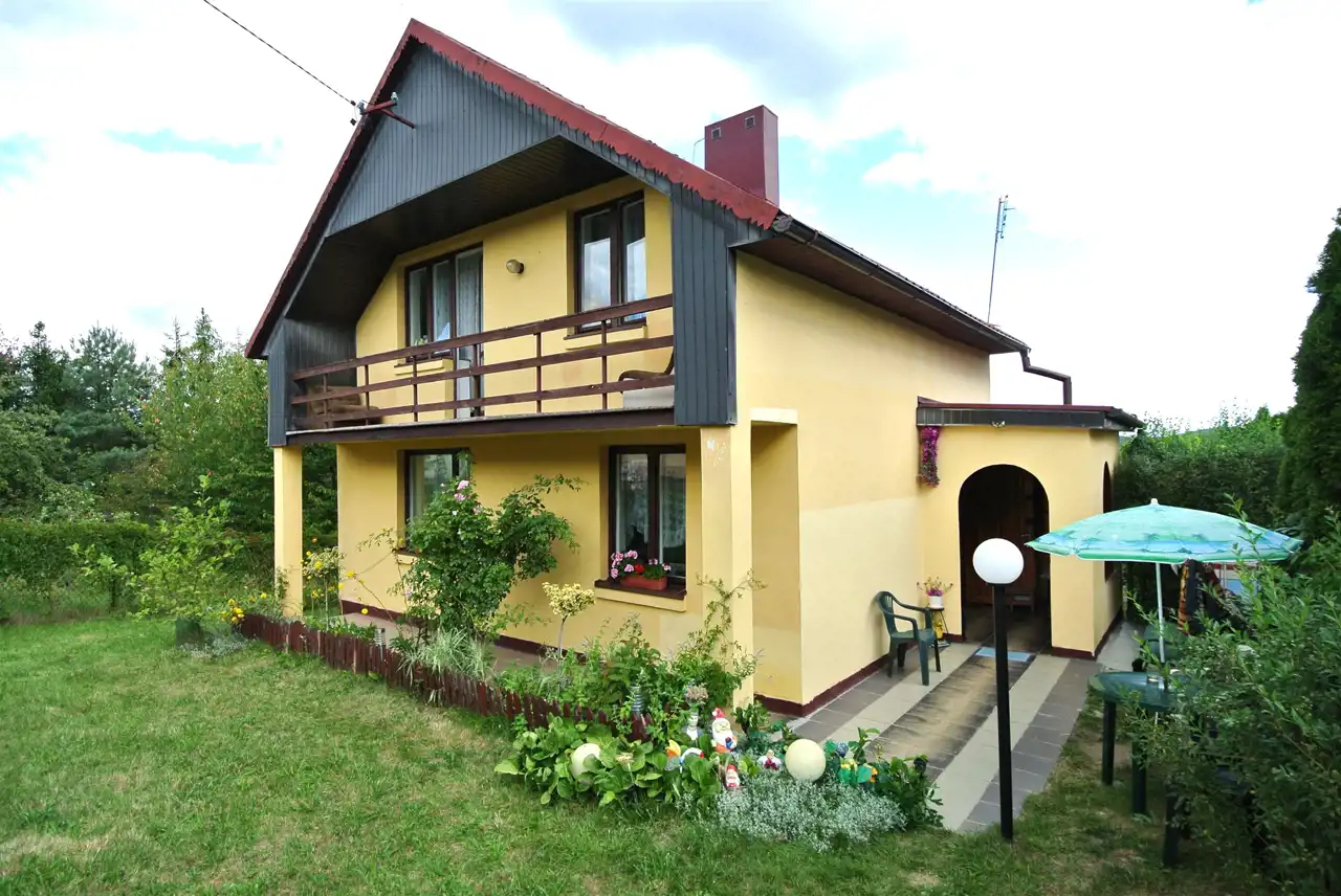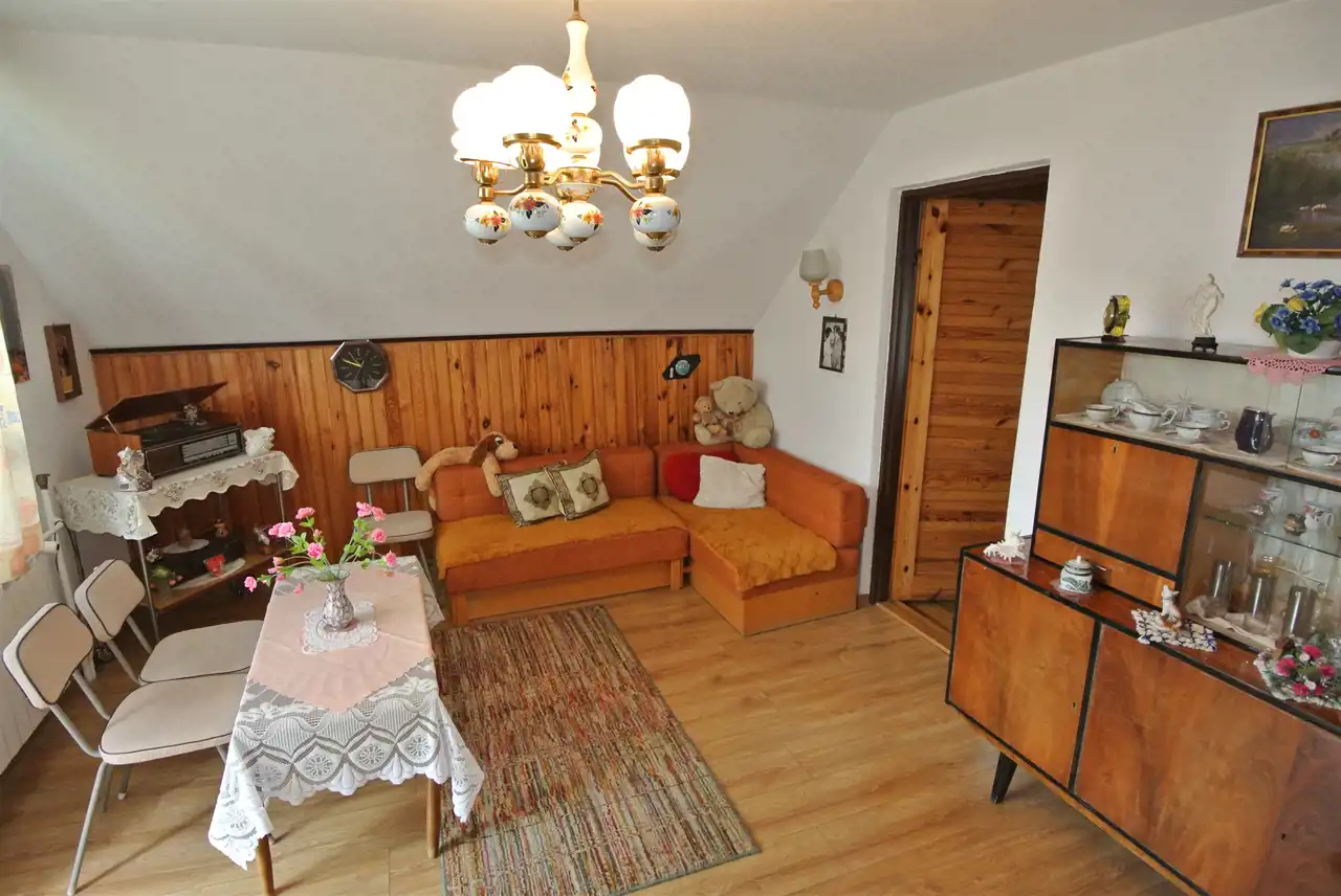 Dom wybudowany z pustaka suporex, pokryty eternitem, ogrzewanie piecem na paliwa stałe.