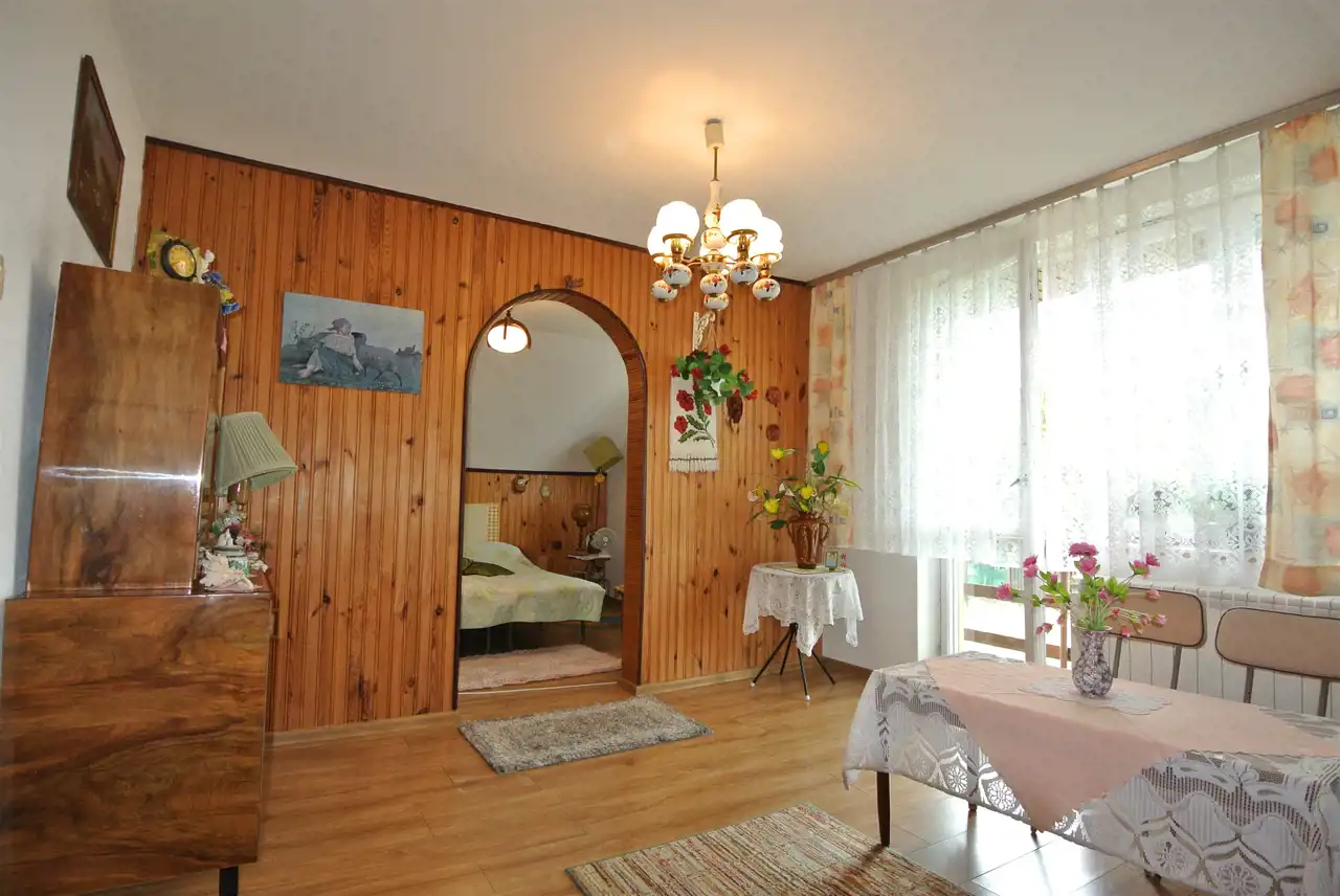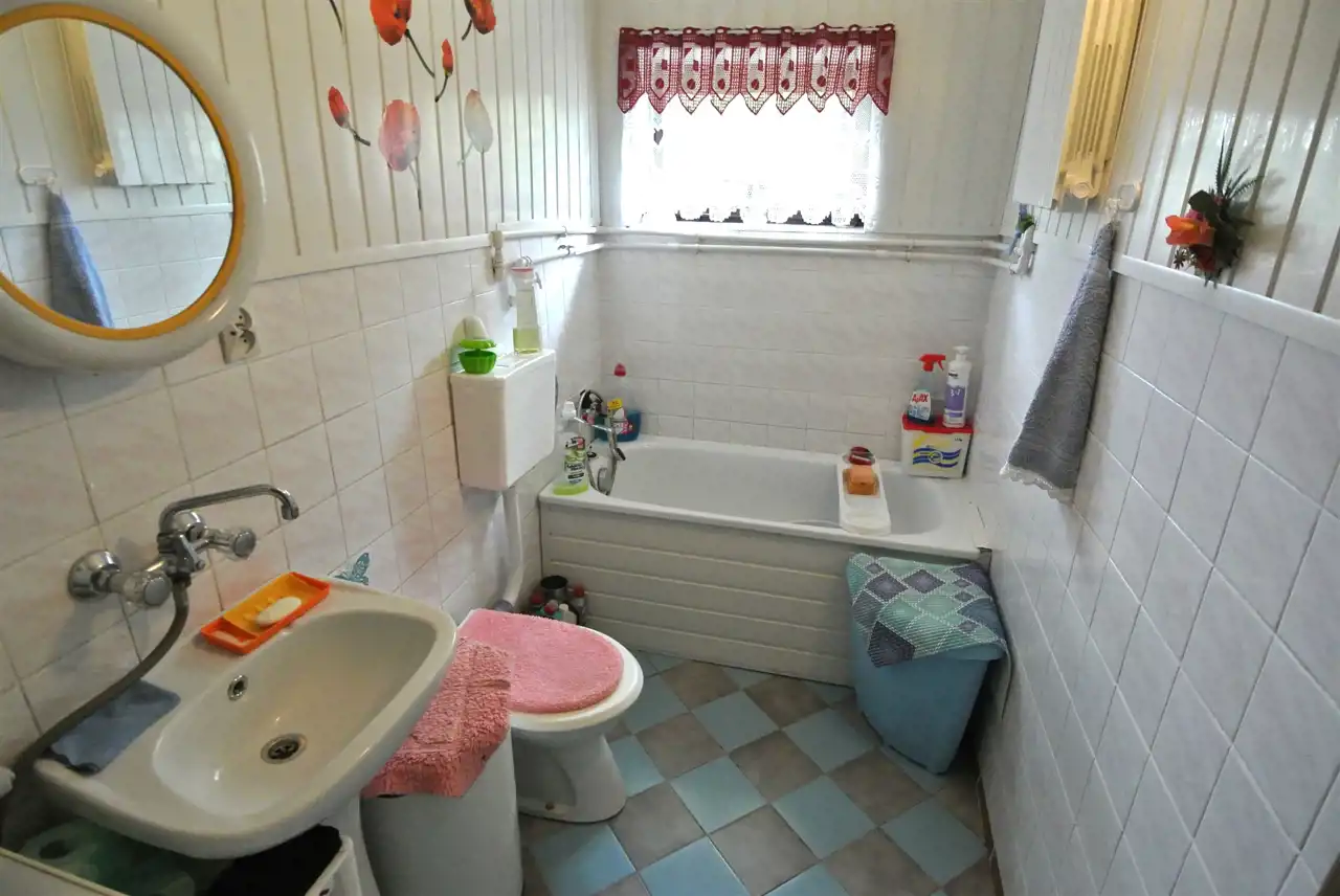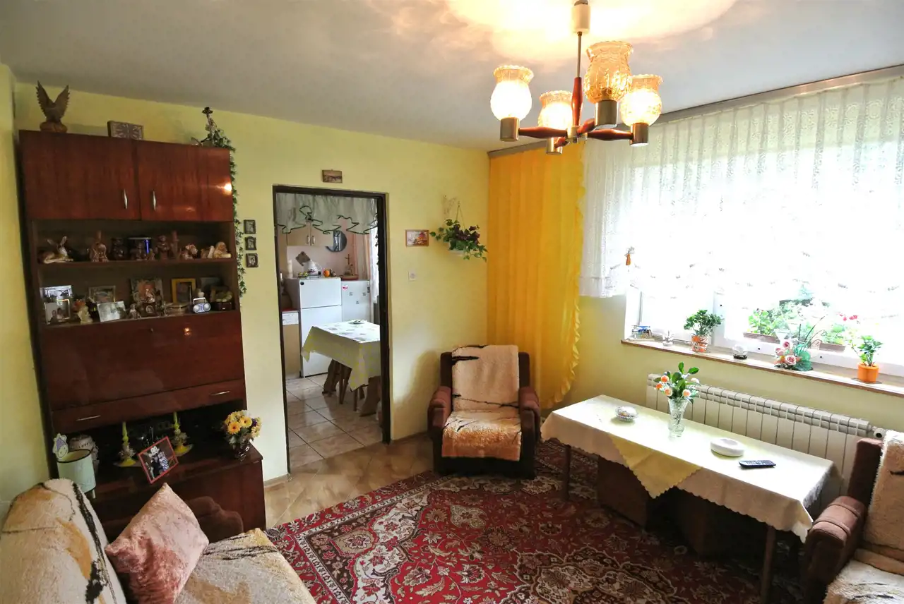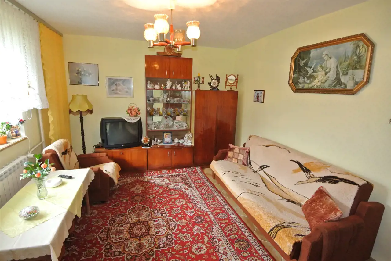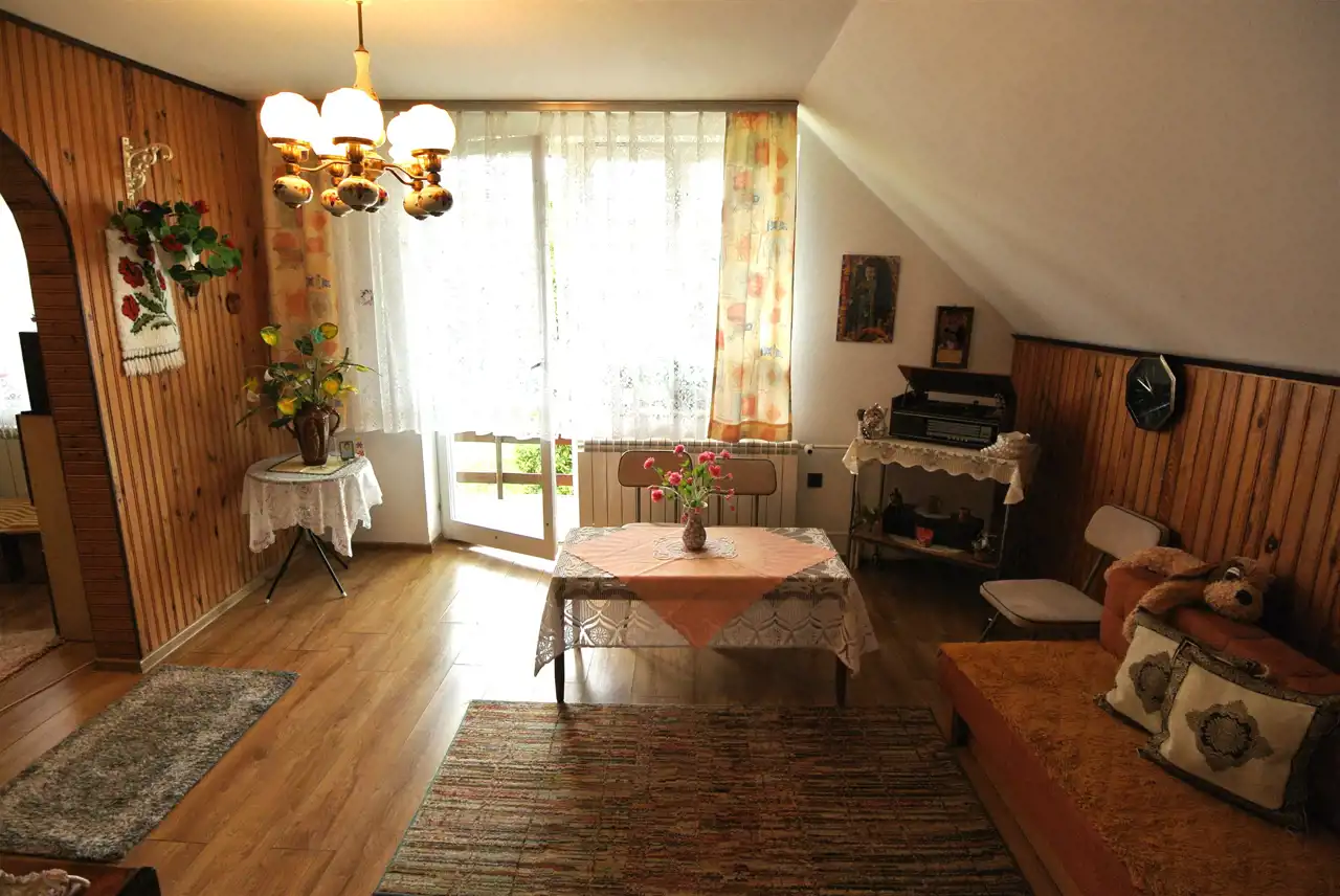 Dom wybudowany z pustaka suporex, pokryty eternitem, ogrzewanie piecem na paliwa stałe.