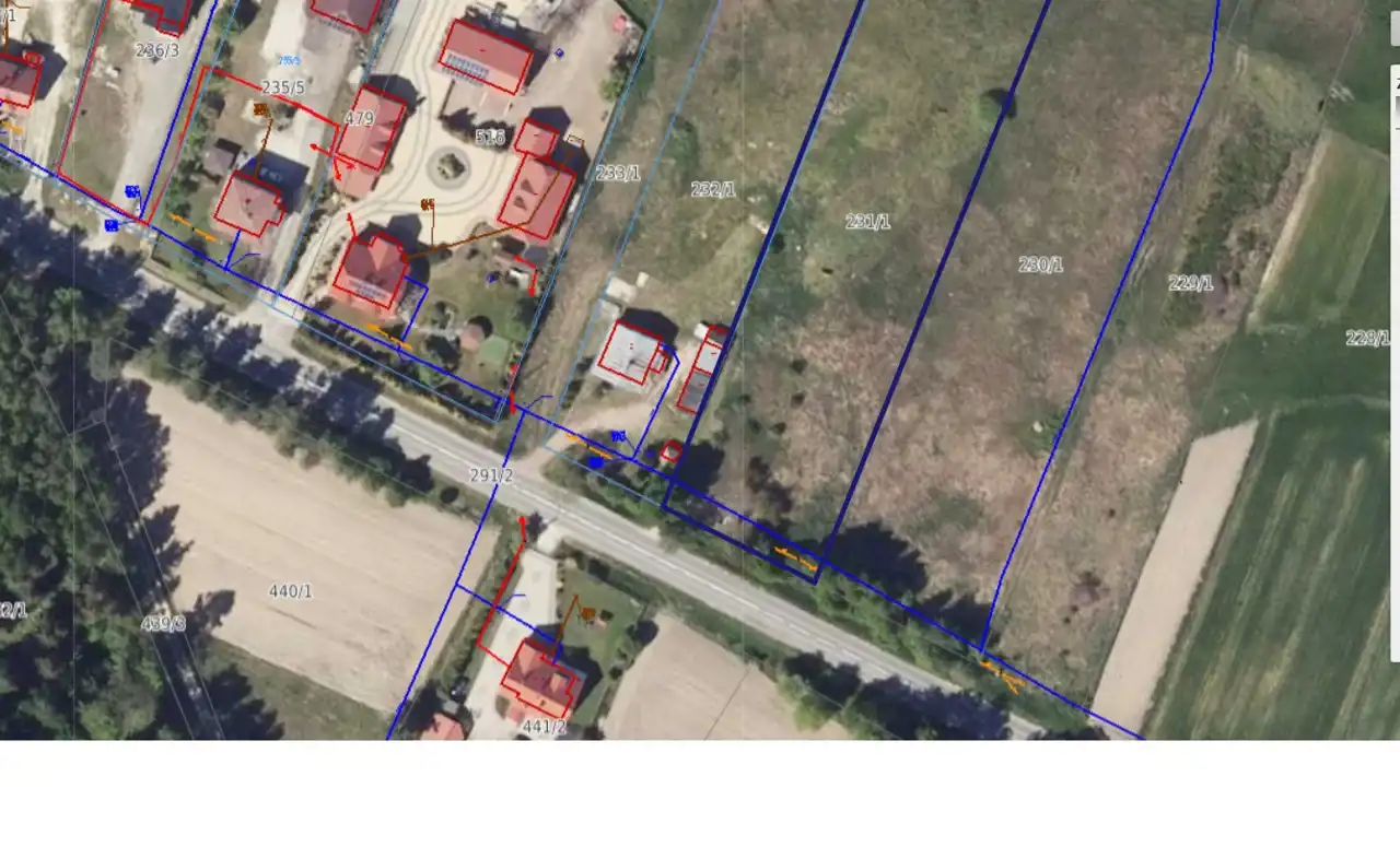 The property is located within the Local Spatial Development Plan. In the frontal part, at a depth of approx. 90 m, it is marked with the symbol MN (area designated for single-family residential development), while in the further part, it is marked with R (agricultural land with the possibility of afforestation). The strip of land adjacent to the road is designated for the widening of the provincial road.