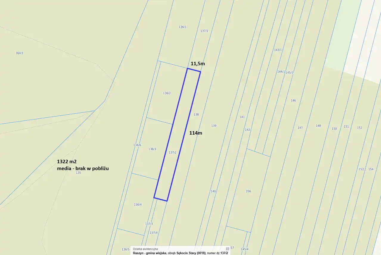 - Media Woda: brak; Kanalizacja: brak; Prąd: brak; Gaz: brak