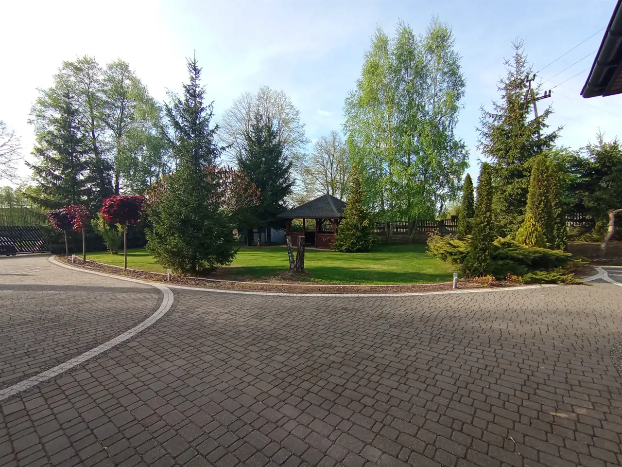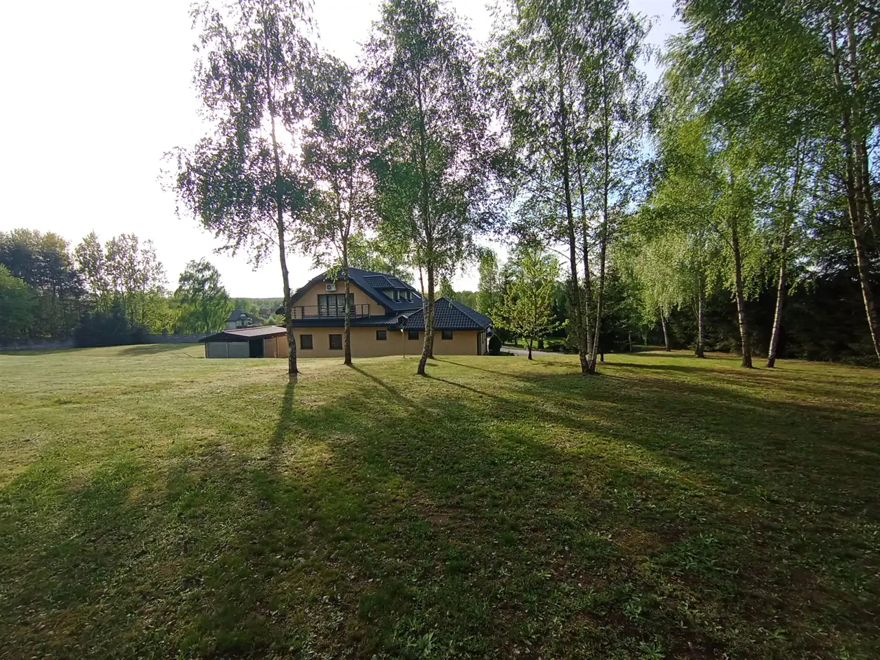 Na tej urokliwej działce o powierzchni 5315 m2 znajduje się dwukondygnacyjny dom o powierzchni około 185 m² wraz z halą i garażem o łącznej powierzchni około 128 m2.