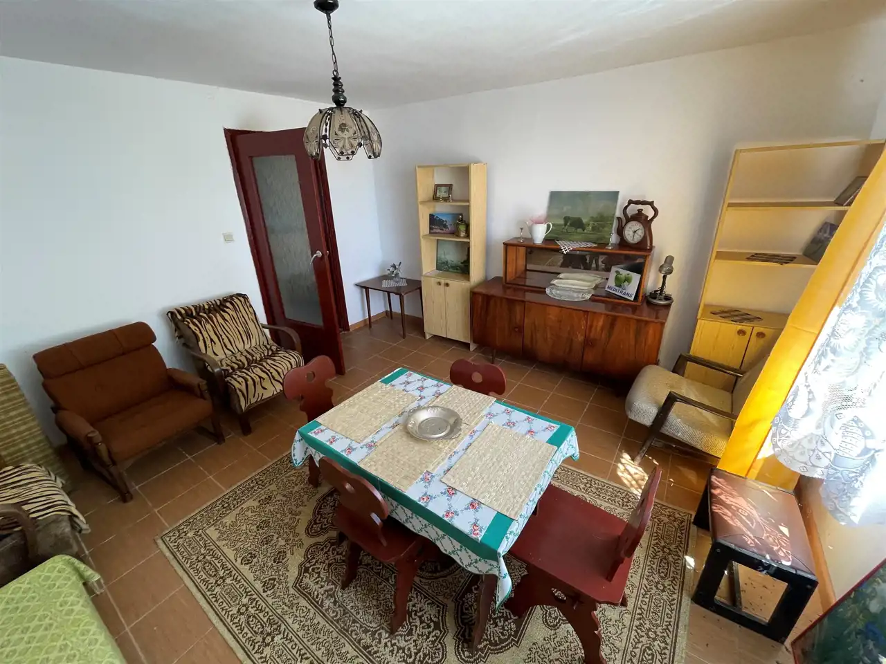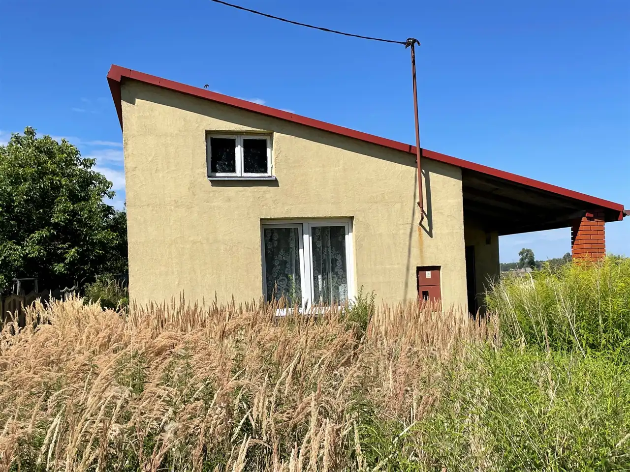 Okna PCV. Dach po modernizacji kryty blachą. W pokojach na podłogach płytki.