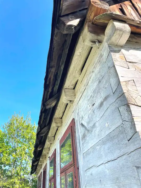 Więźba dachowa drewniana bez ocieplenia. Pokrycie blachą.
