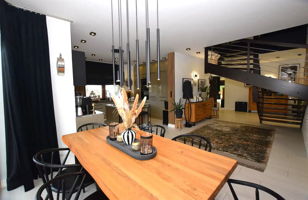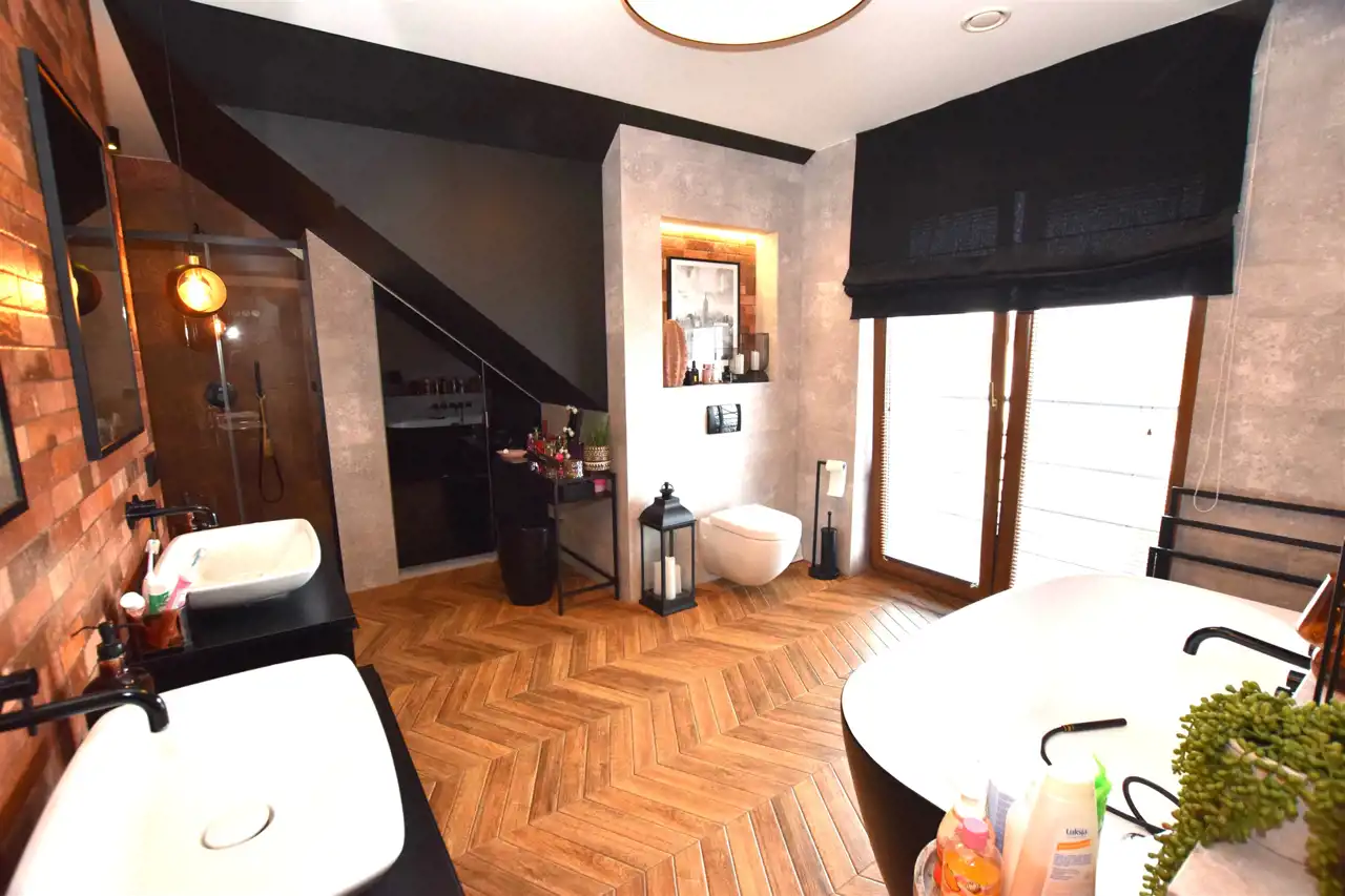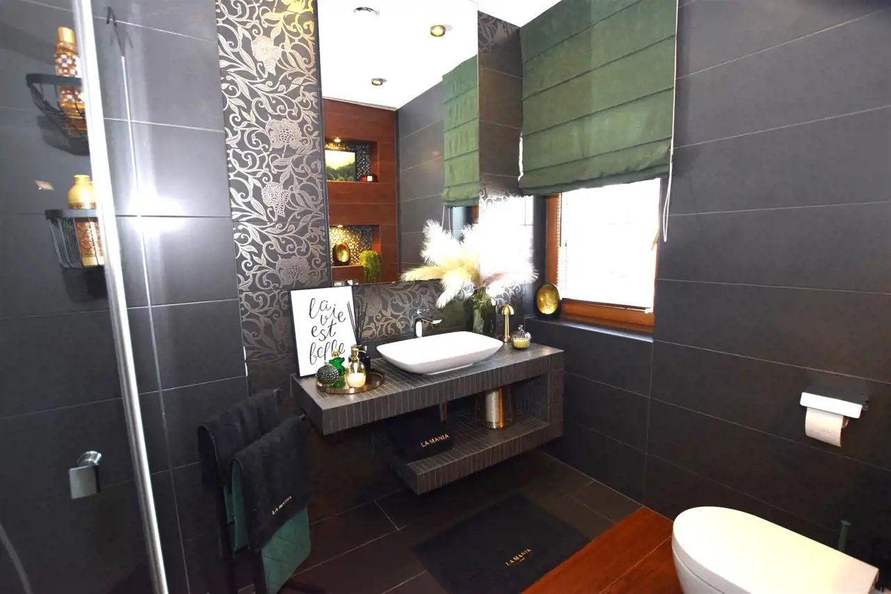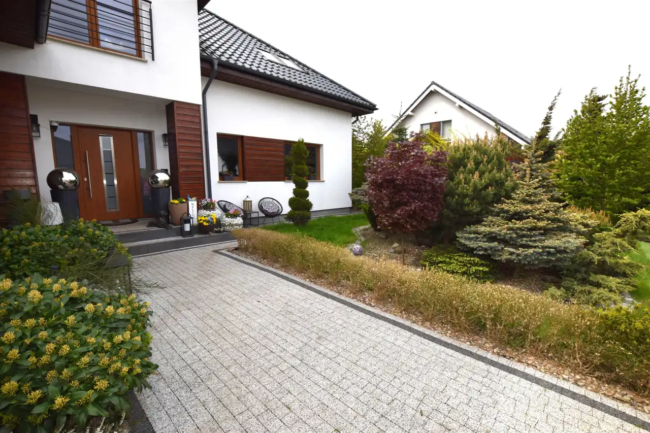 Budynek charakteryzuje się wysokim standardem wykończenia przy użyciu materiałów najwyższej jakości oraz dużą dbałością o detale. Całość urządzona z gustem i doskonale się komponująca. Własny ogród, duży garaż, wykostkowany podjazd.