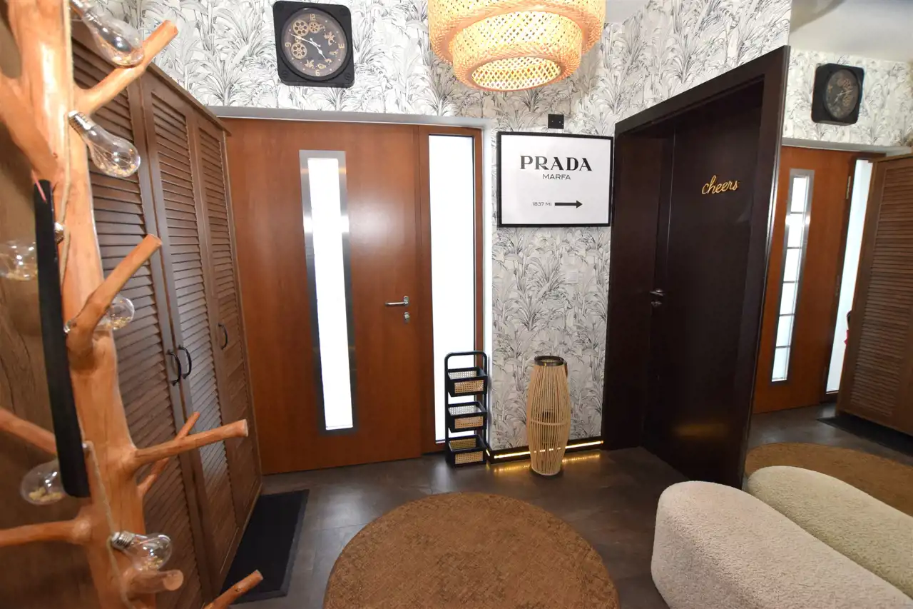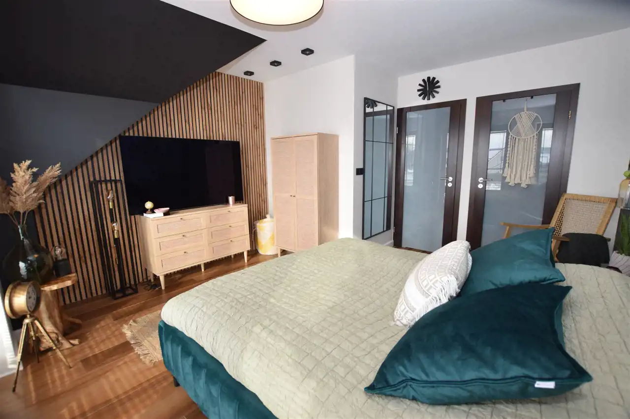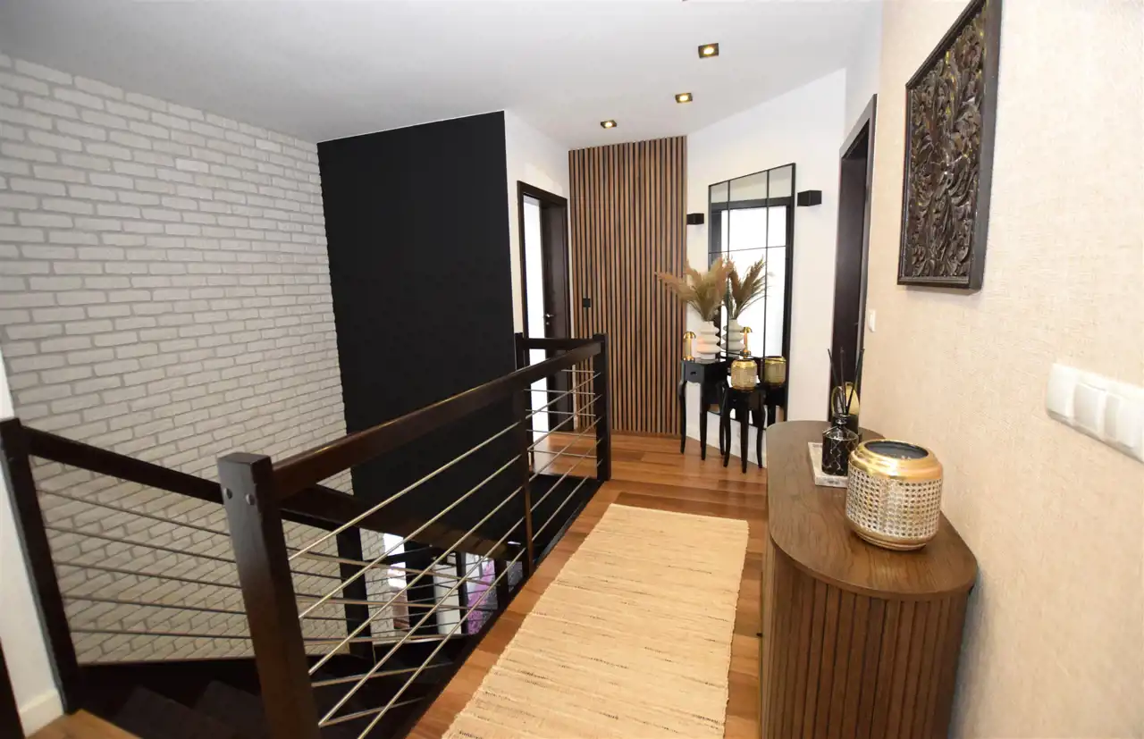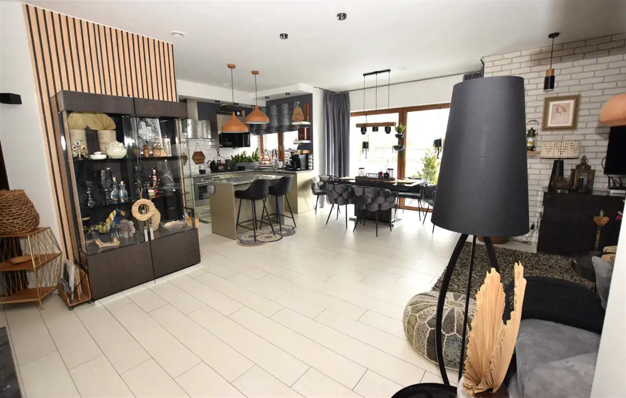 Budynek charakteryzuje się wysokim standardem wykończenia przy użyciu materiałów najwyższej jakości oraz dużą dbałością o detale. Całość urządzona z gustem i doskonale się komponująca. Własny ogród, duży garaż, wykostkowany podjazd.