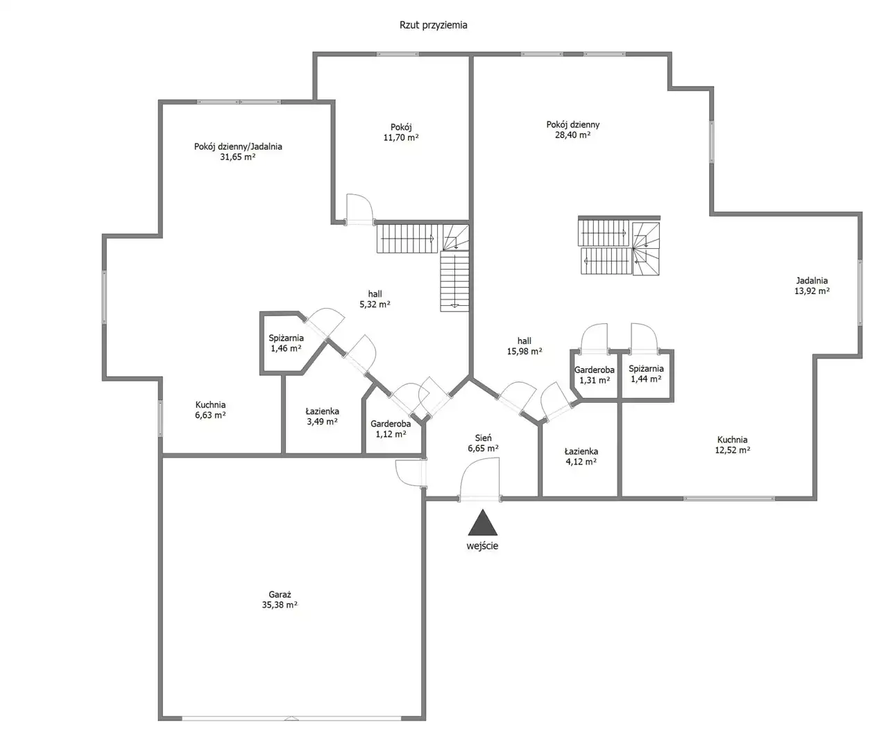 - Dwa pokoje ( pokój dzienny 31,65; dodatkowy pokój 11,70m2)