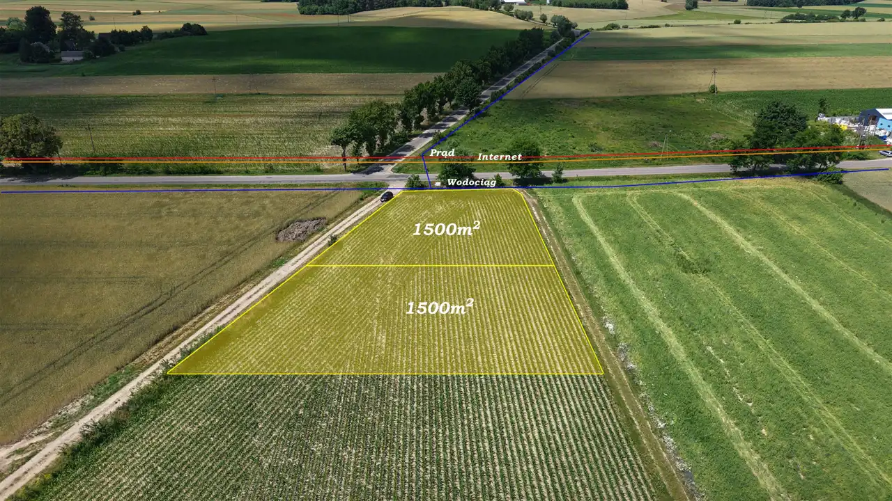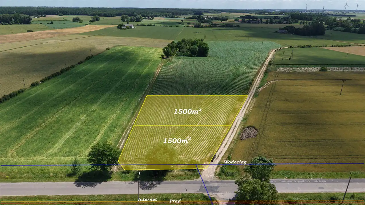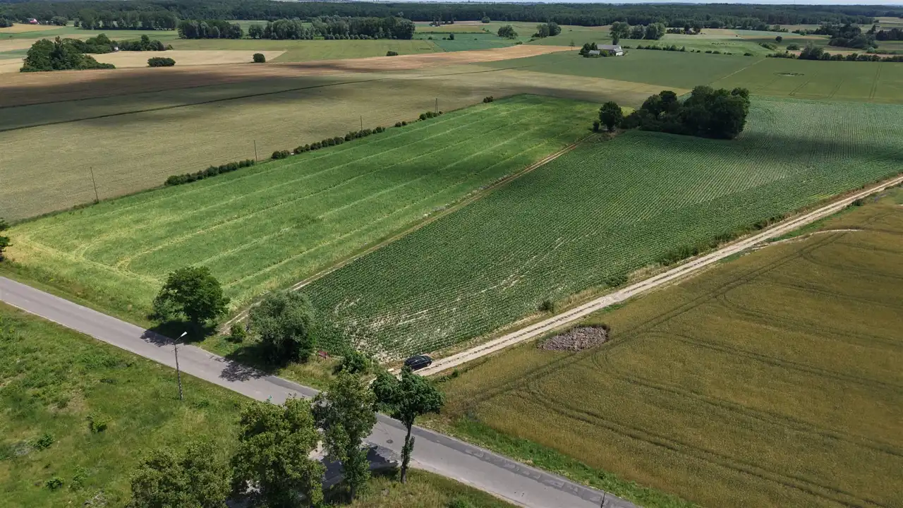 Działka zlokalizowana przy drodze asfaltowej oraz utwardzonej drodze gminnej. W bezpośrednim sąsiedztwie rozciągają się tereny zielone oraz zabudowa jednorodzinna, co czyni to miejsce idealnym pod budowę domu.
