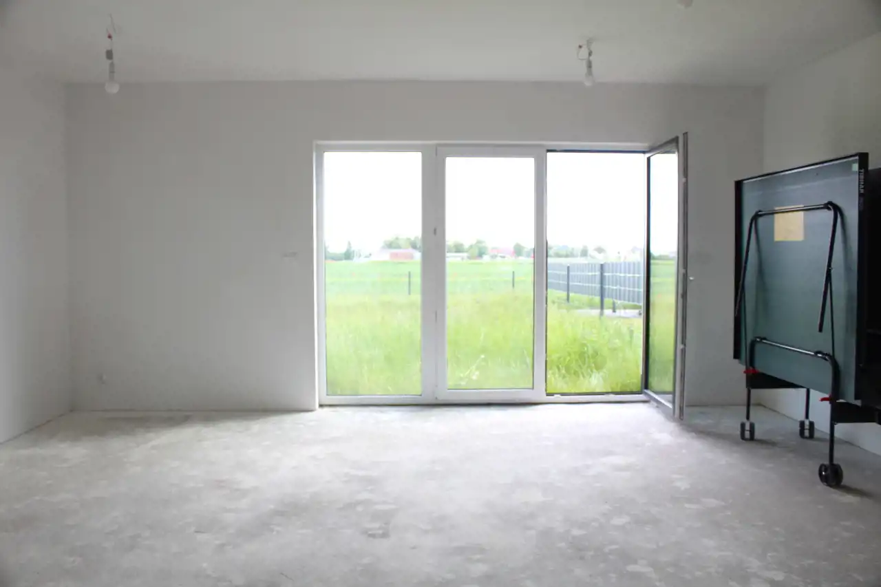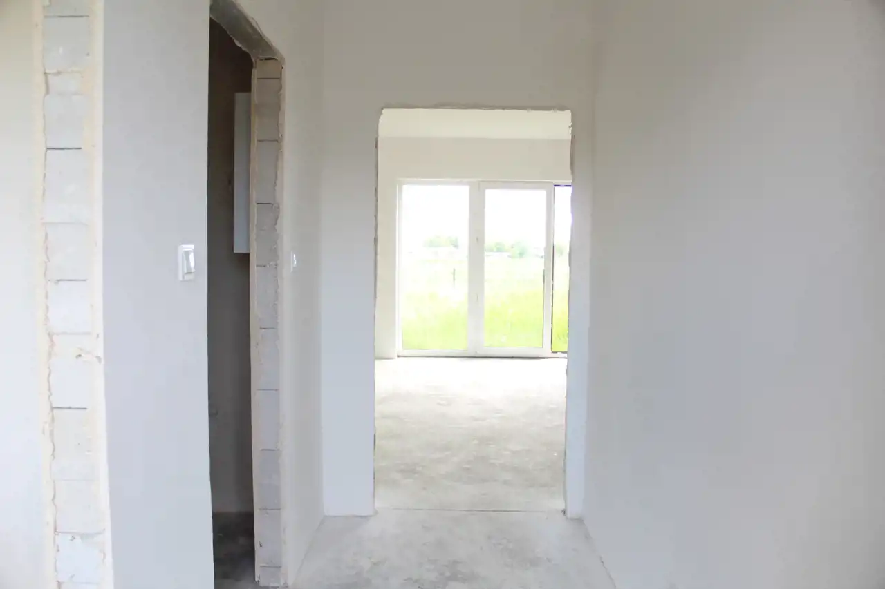 Dom w zabudowie bliźniaczej w stanie deweloperskim położony na działce numer 1096 w Większycach (połowa udziału) przy ul. Pogodnej na spokojnym, nowym osiedlu w malowniczym otoczeniu. Na parterze hol, salon z tarasem i aneksem kuchennym, pomieszczenie gospodarcze i łazienka. Na piętrze trzy pokoje, łazienka i korytarz. Ogrzewanie - pompa ciepła. Media: prąd, woda, kanalizacja. W ramach sprzedaży również projekt wykończenia wnętrza. Cena do negocjacji.