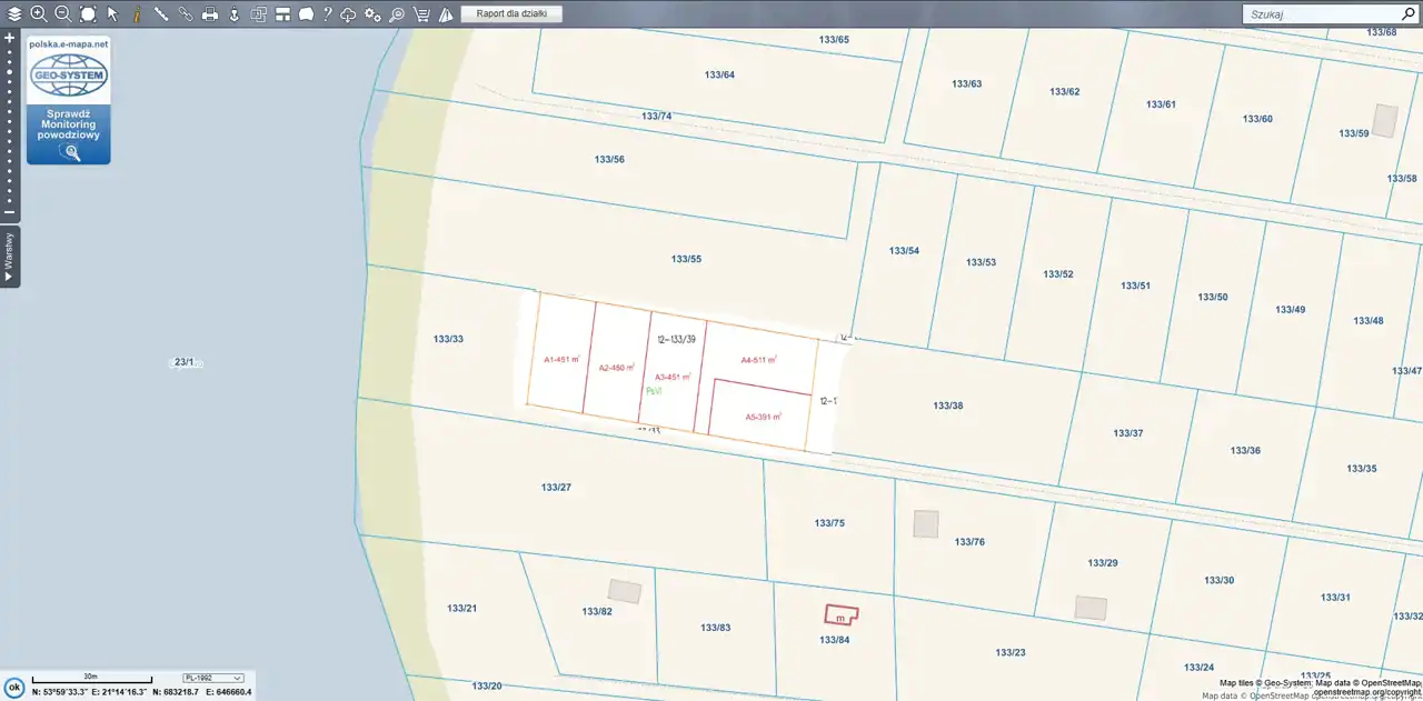Sprzedam działki rekreacyjne położone nad Jeziorem Dejnowa w miejscowości Staniewo, powiat kętrzyński, gmina Reszel. Działki oznaczona na mapie ( A-1. pow451m) Sprzedawane są jako udziały w działce, użytek na działce to PsVI. Razem z działkami sprzedawane są udziały w drodze dojazdowej w której znajduje się sieć wodociągowa oraz energetyczna. Cena za działkę 80.000zł .