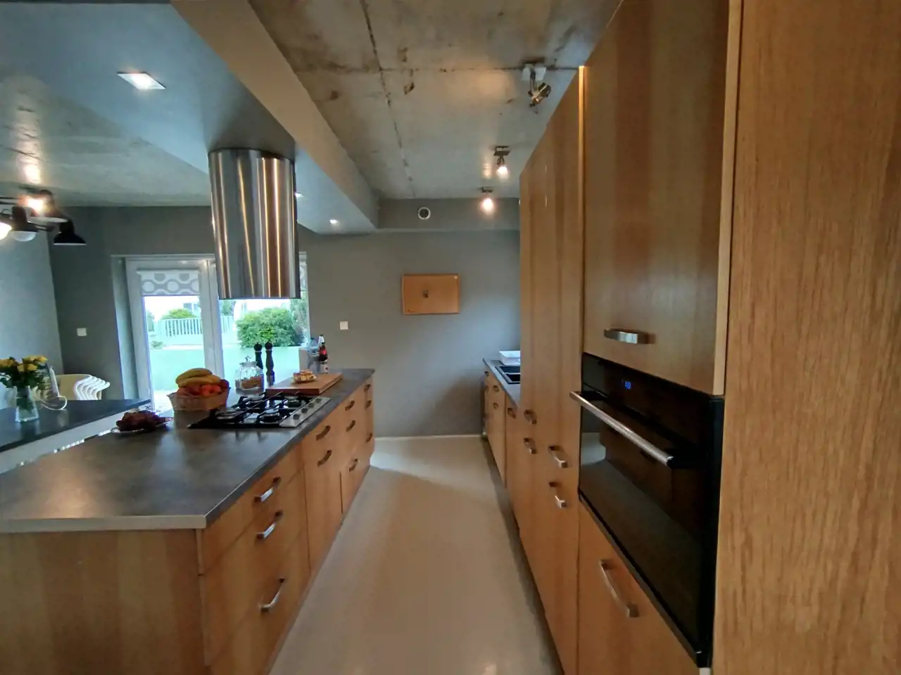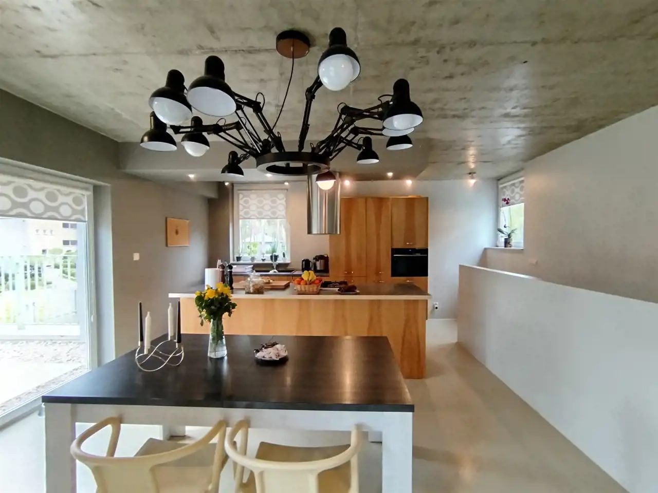 - Bardzo ładna, duża kuchnia z wyspą, otwarta na przestronny salon z kominkiem, gdzie z salonu oraz z kuchni prowadzą drzwi wyjściowe na duży taras