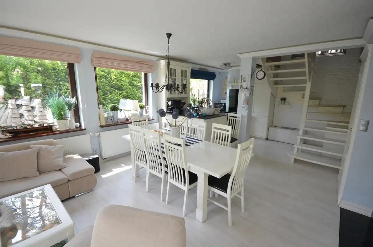 Dom - "Rezydencja" w urokliwej miejscowości Pobierowo , w bardzo bliskiej odległości od morza ok. 150m - cisza , spokój i z widokiem na morze (wiosna jesień, zima - ze względu na liście drzew) .Dom wybudowany w 2011r dla potrzeb własnych z wysokiej klasy materiałów , całość ogrodzona i monitorowana , dachówka ceramiczna .Powierzchnia budynku wynosi 300m2 , działka 938m2. Nieruchomość została zaprojektowana dla potrzeb własnych jak i pod wynajem , część prywatna wykonana w podwyższonym standardzie z wysokiej klasy materiałów ( granity, okna drewniane mahoniowe, bramy wjazdowe na pilota wiśniowski itp ) ok. 120m2 z salonem kominkowym- otwartą kuchnią i wyjściem na 2 tarasy oraz 3 sypialniami ,2 łazienkami z wc i wc na parterze . Druga część budynku : 3 apartamenty dwupokojowe i 2 apartamenty jednopokojowe - całkowicie wyposażone z zapleczem kuchenno-sanitarnym, sala fitnes ok. 60m2 -( z możliwością przekształcenia na 2 apartamenty ) oraz możliwością wykonania odrębnego drugiego wjazdu na wynajmowaną posesję wraz powiększeniem lokali na piętrze o zaadaptowanie wolnego poddasza ( ok. 100m2 poddasza) .Część zaprojektowana pod wynajem nigdy nie była jeszcze wynajmowana. Ogrzewanie gazowe ,przygotowane wszystkie przyłącza pod basen zewnętrzny wkopany. Zapraszam chętnych do zakupu dla celów prywatnych jak i pod komercję . OFERTA BIURA NIERUCHOMOŚCI ARKONA