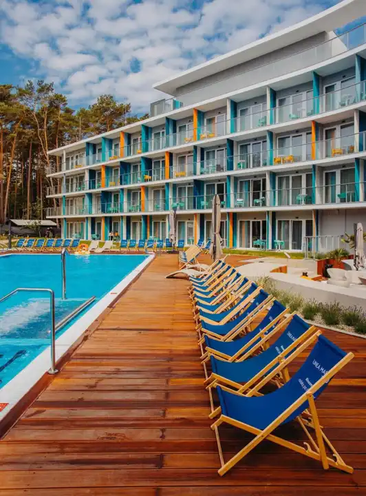 Linea Mare is a 5**** Hotel with a swimming pool by the sea, offering guests a wide range of activities, including SPA&Wellnes, Albero Italian Restaurant and Lobby Bar, and above all - location 300m from the beach! The property has both an indoor pool and a summer outdoor pool. In Linea Mare you will find comfortable rooms and apartments where you will feel at home. Each room and apartment has been designed to meet the needs of guests and provide the best conditions of stay. Pobierowo is an ideal place for families with children as well as for couples who are looking for a romantic atmosphere. During the day you can enjoy the charms of the sea, and in the evening relax in the SPA area or enjoy delicious dishes in the restaurant. Book today and plan the holiday of your dreams in a hotel by the sea that will provide unforgettable moments.