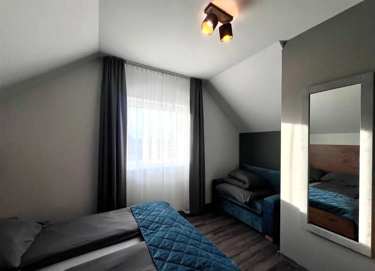 Na górze zaś znajdziemy dwie wygodne sypialnie.