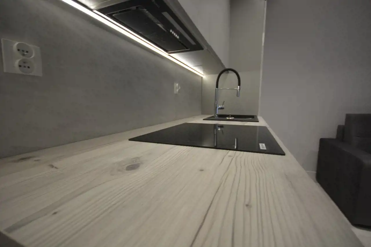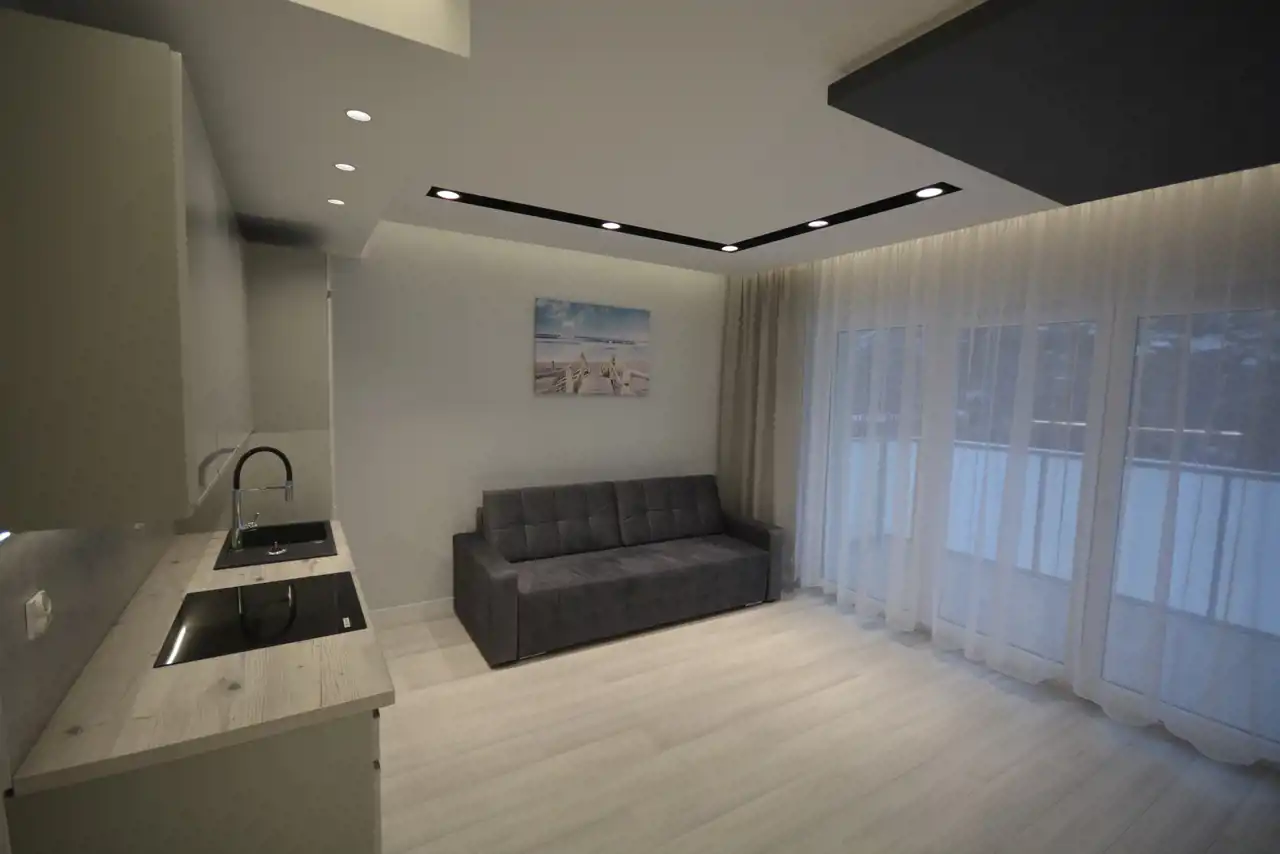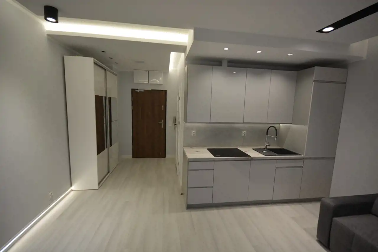Mieszkanie kompletnie wykończone i gotowe do zamieszkania dysponuje powierzchnią 28 m2 i składa się z pokoju z aneksem kuchennym, łazienki z WC oraz przedpokoju. Dodatkowo do dyspozycji mamy duży balkon o powierzchni 6,80 m2.