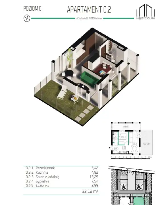 - Charakterystyka mieszkania 32.12 m2, 2 pokoje