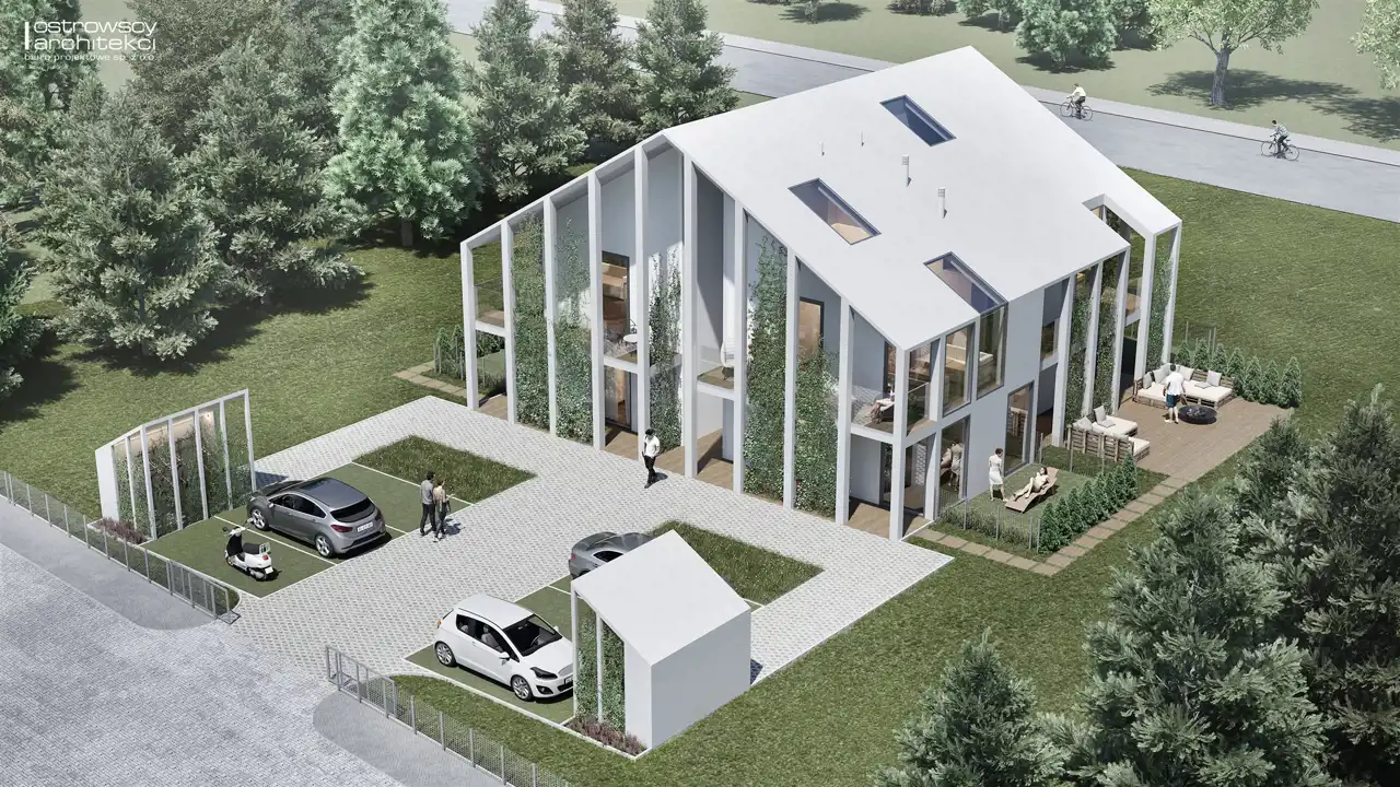 • Przed budynkiem przewidziano miejsca postojowe i rowerownię.