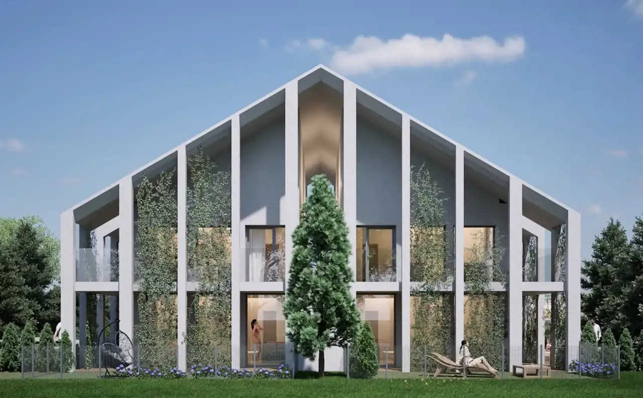 • Otoczenie wzbogacą nasadzenia drzew i traw pampasowych.