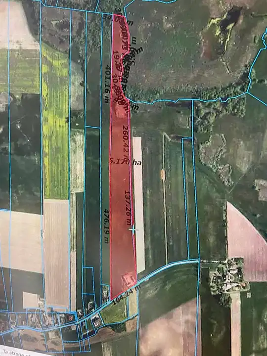 Do gospodarstwa przynależy grunt o powierzchni 5 ha. który jest w ciągłej uprawie. Możliwość podziału ziemi.