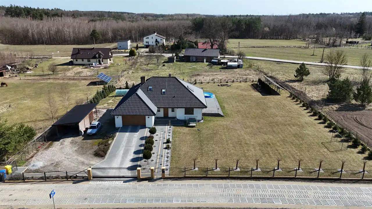 Dom usytuowany jest na dużej, w pełni ogrodzonej działce o powierzchni 3001 m² .Teren jest częściowo zagospodarowany i daje ogromne możliwości aranżacyjne – od ogrodu rekreacyjnego, przez plac zabaw dla dzieci, po strefę relaksu z tarasem lub altaną.