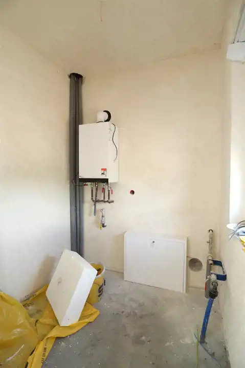 - Media: prąd, woda, gaz, ogrzewanie- II funkcyjny kocioł gazowy firmy Viessmann, szambo.