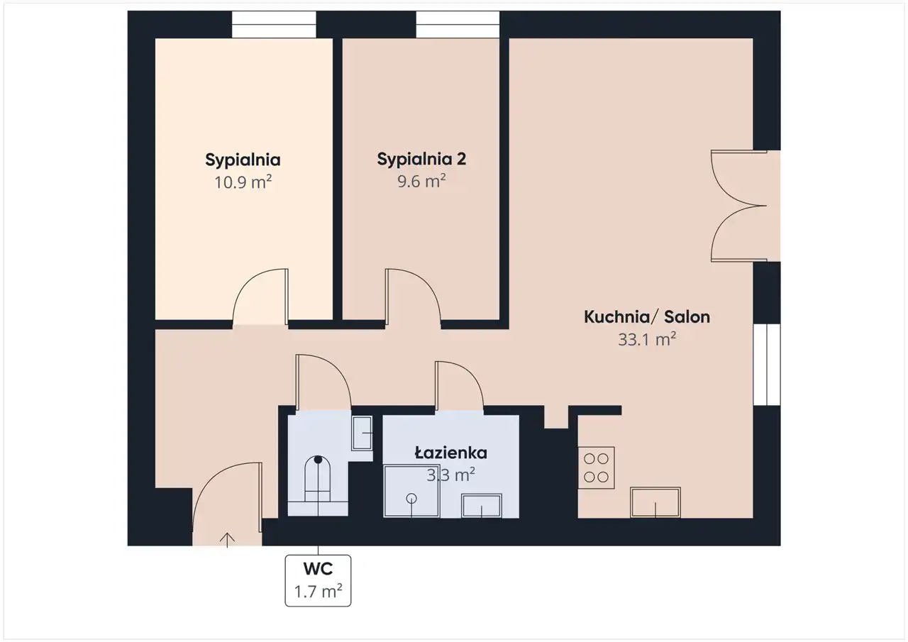 - Charakterystyka mieszkania 58.65 m2, 3 pokoje