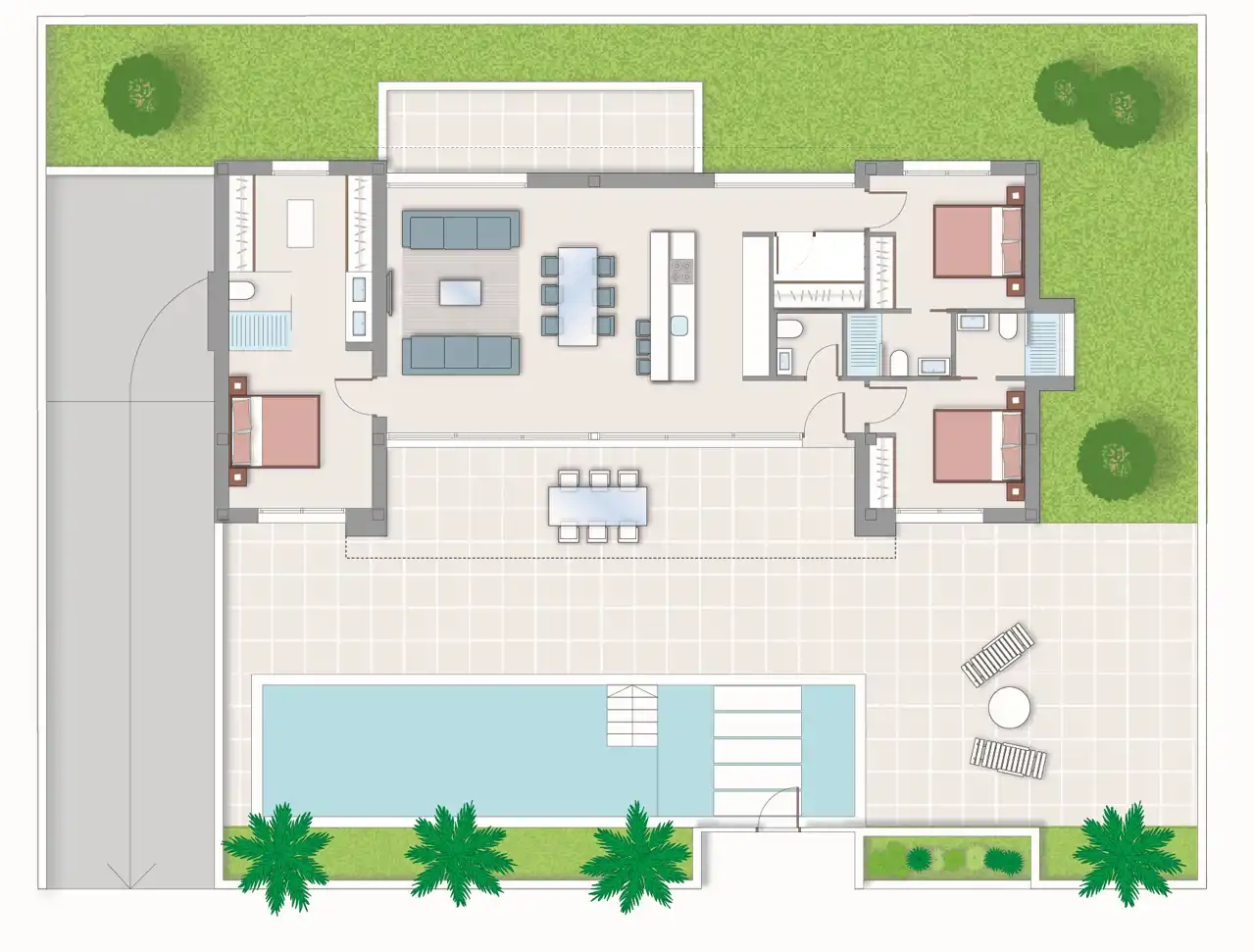 W uroczej miejscowości znajdującej się na wzniesieniu za laguną, w bliskości pól golfowych oferujemy trzy modele willi do wyboru.