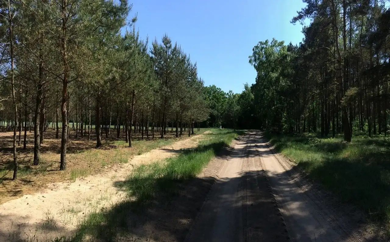 Dojazd do działek drogą gruntową, po części drogą leśną.