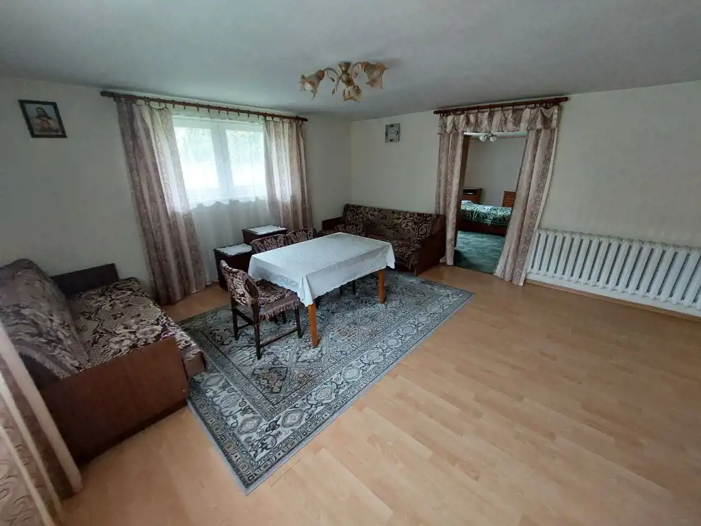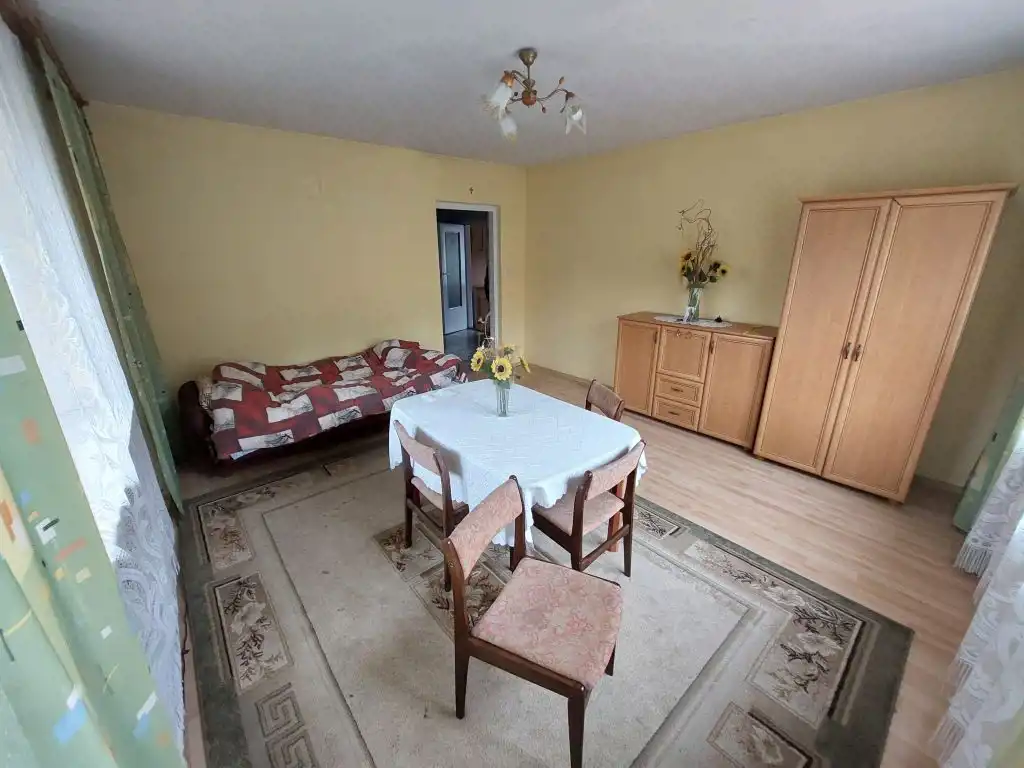 - PARTER (wejście z zewnątrz z poziomu "0"): garaż o pow.: 26 mkw. z kotłownią na węgiel i schodami na piętro, spiżarnia, przejściowa kuchnia o pow.: 15 mkw. (panele, tapety, glazura), pokój o pow.: 22 mkw (panele, tynk, tapety) i drugi pokój o pow. 15 mkw (wykładzina dywanowa)