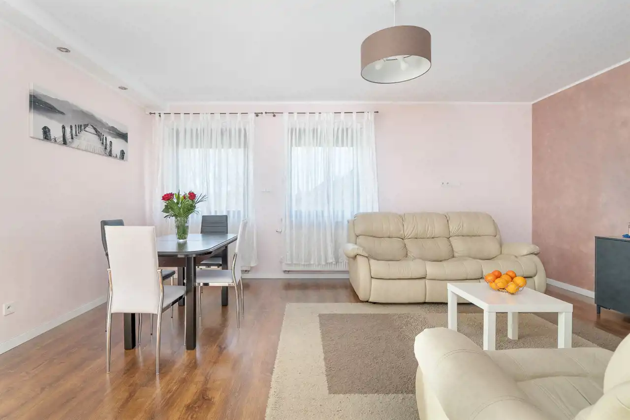 Dogodna i sprawna komunikacja zarówno własnym autem jak i komunikacją publiczną - kilka minut pieszo na przystanek autobusowy MPK, w odległości 1 km dworzec PKP, wjazd na obwodnicę S11 w odległości ok. 3km.